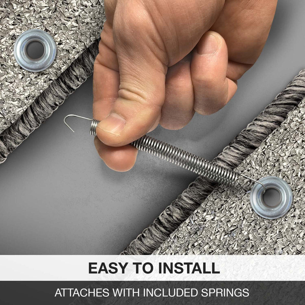 The Wraparound Radius RV Step Rug 3-Pack by Prest-O-Fit is designed for multi-step RV and camper entrances. Each pack contains three (3) 22 inch wide rugs that fit curved steps 8 inches to 10 inches deep. Made of outdoor turf, these rugs are UV-protected against sun damage and fading. The classic wraparound design and included rust-resistant springs make them adjustable and easy to install. These pet-friendly rugs provide added traction to help prevent slips on wet weather days and are finished on all edges to prevent fraying. They are also easy to clean, simply hose off and dry! Offered in a variety of colors, these rugs will preserve your RV's interior while complementing its exterior. Assembled in the USA.