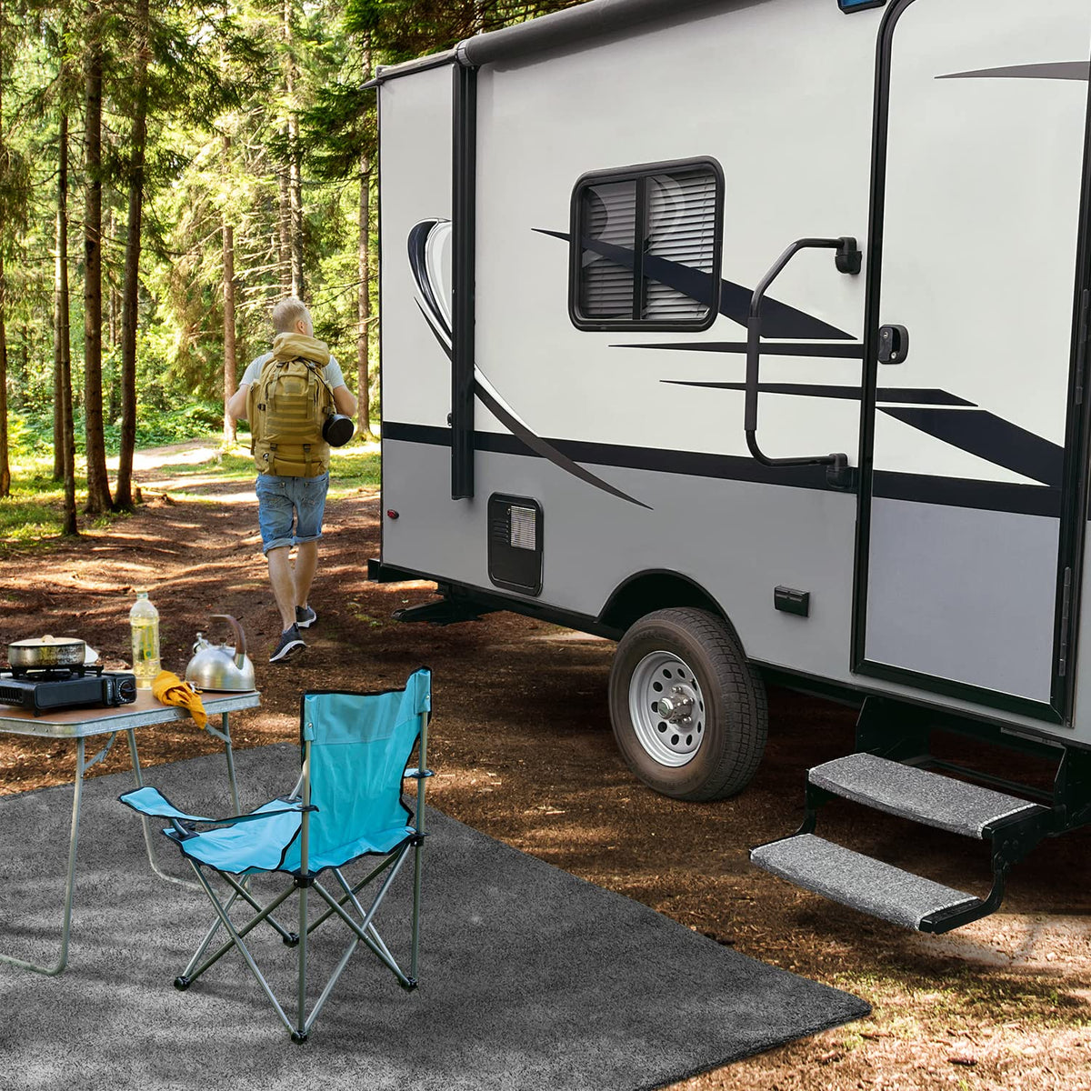 Prest-O-Fit 3-Pack 2-4050 Wraparound Radius Rv Step Rug Stone Gray 22 In. Wide