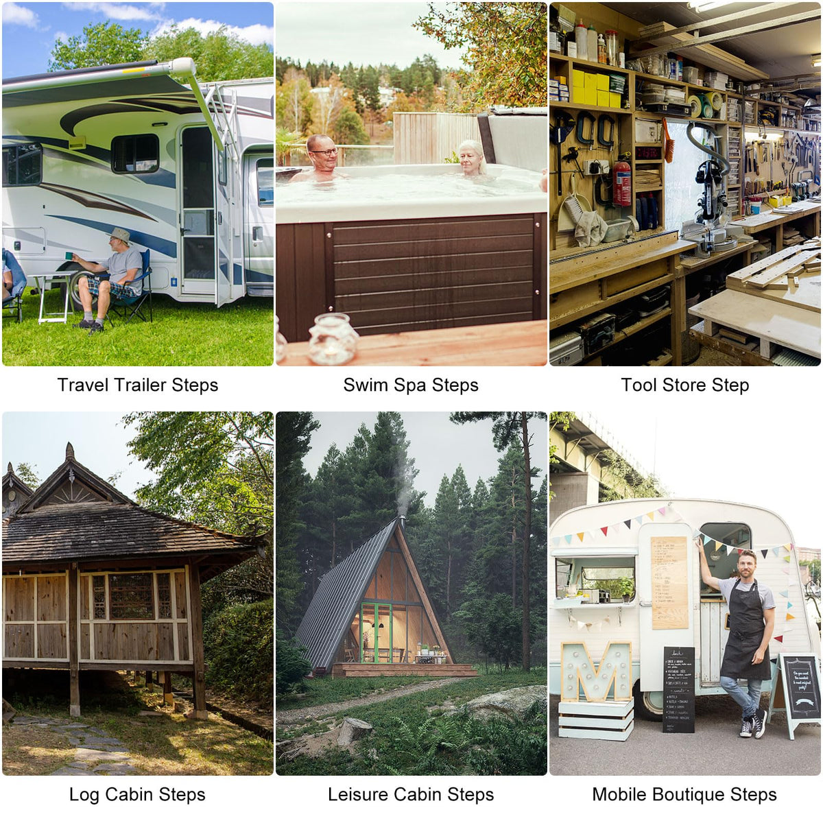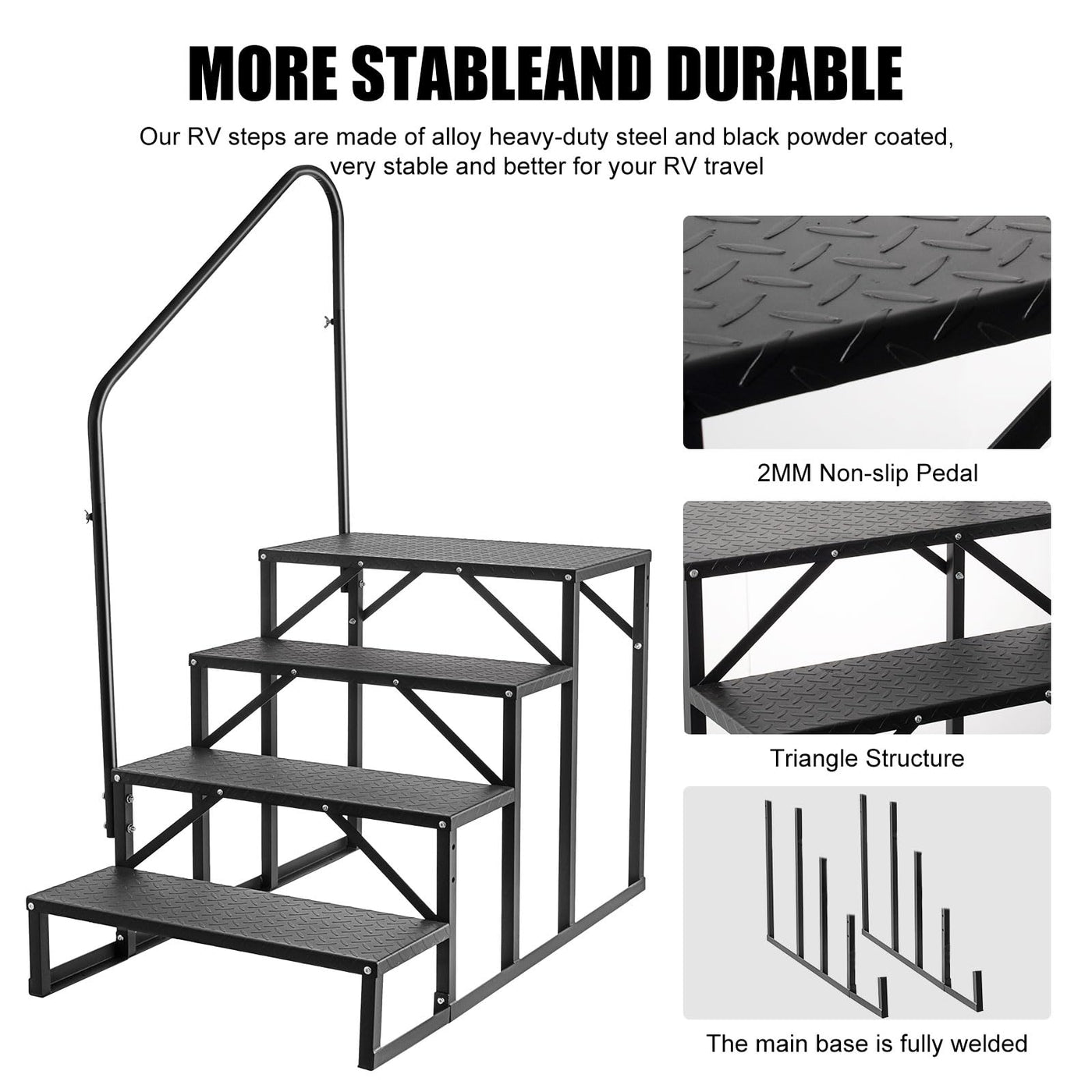 ZBPRESS RV Steps with Handrail,4 Steps Hot Tub Steps with Handrail, RV Stairs,Mobile Home Steps (4 Steps with 1 handrail)