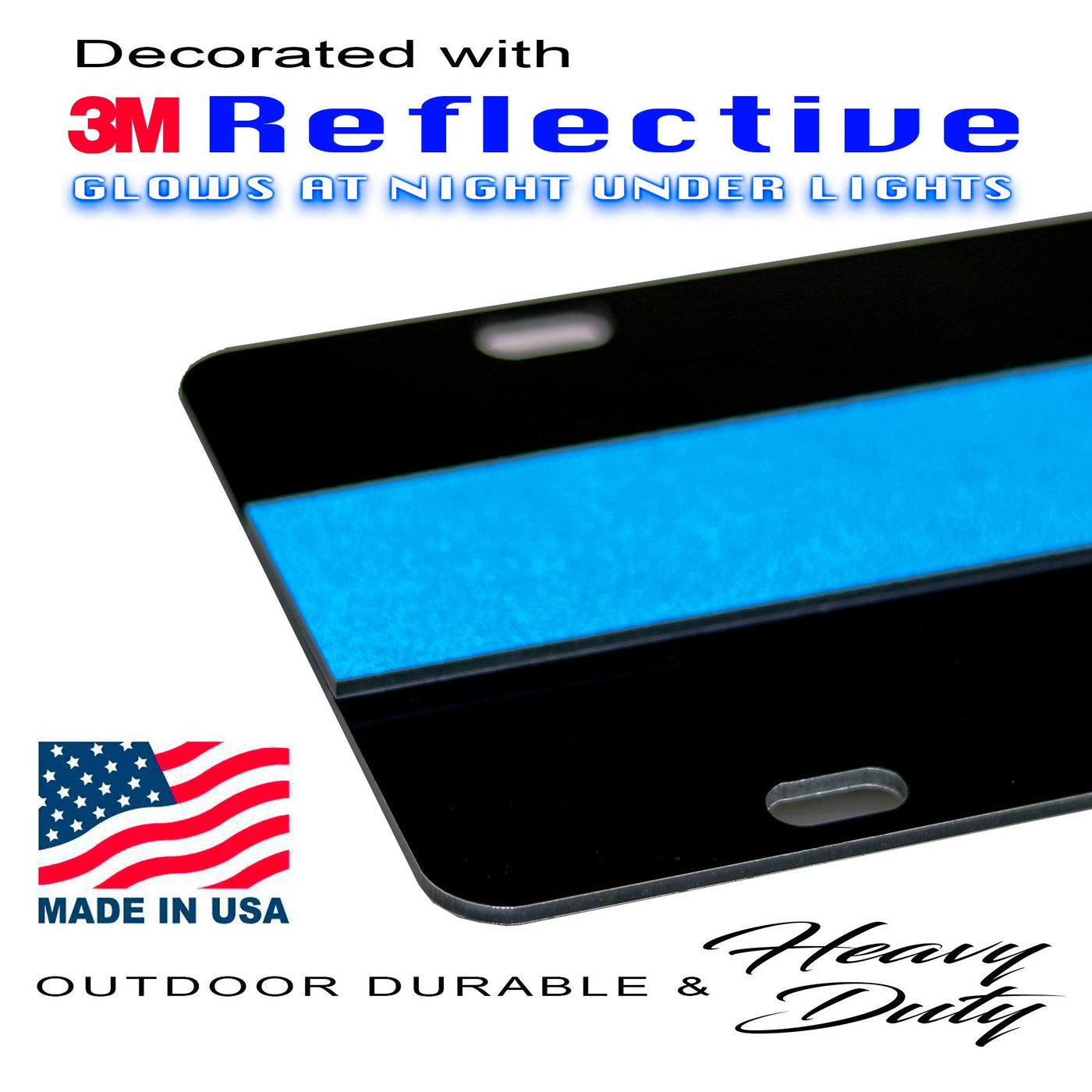 Reflective thin blue line police officer license plate is extremely heavy duty, fabricated out of an aluminum composite material, and decorated with top of the line 3M Reflective Vinyl for years and years of outdoor use. We handcraft these license plates to perfection! Made in the USA and ships fast from our Eastman Georgia facility.