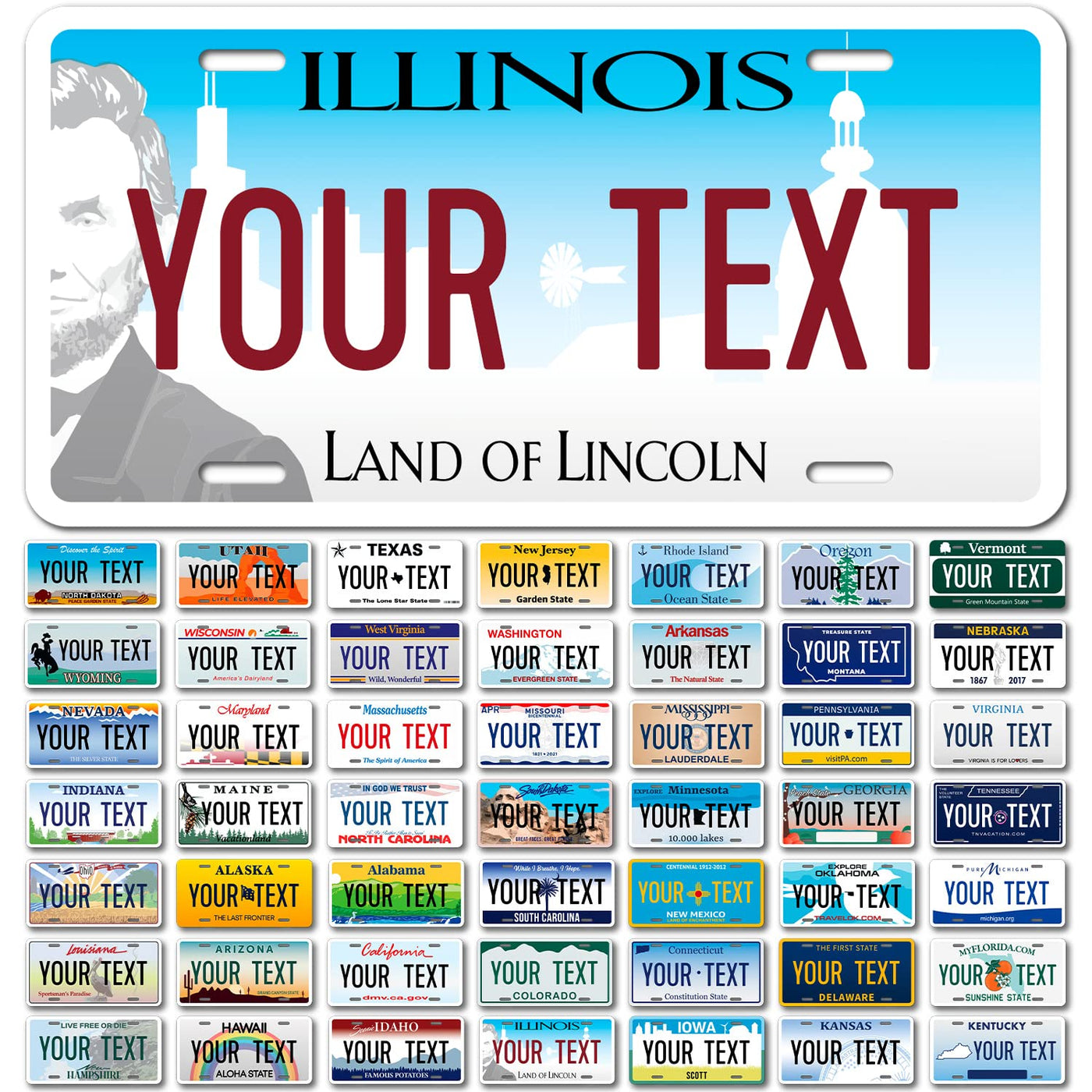 Custom Illinois, Mini License Plate, Personalized 50 States Fake License Plate For Front Of Car Sign, 3X6 Inches, Rust Free .040 Aluminum, Fade Resistant, Made In The Usa By Sigo Signs,