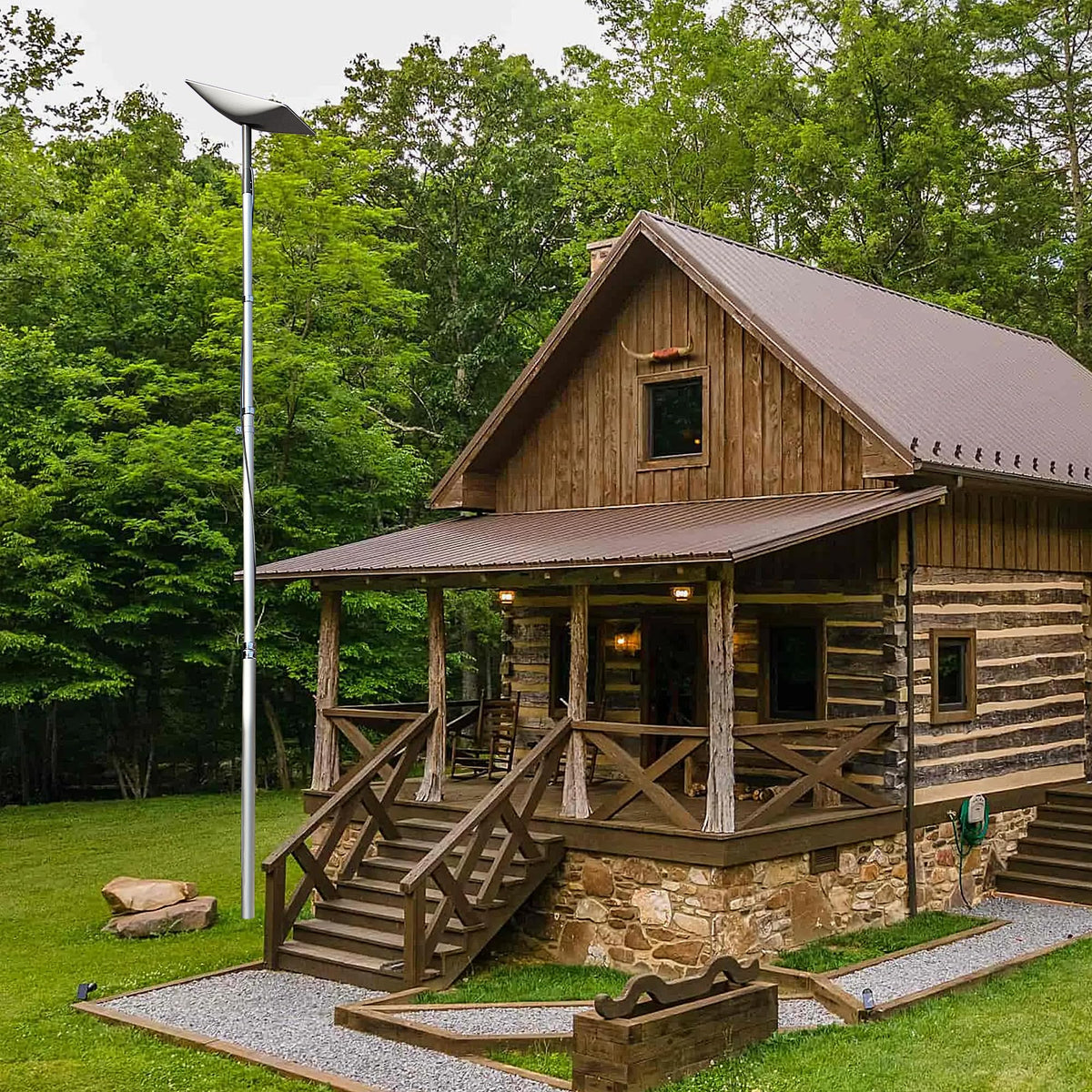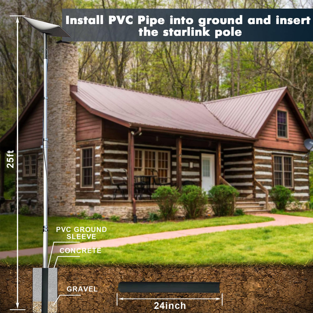 Q: How do I install the telescopic pole?A: To install the pole, you need to dig a 24-inch deep hole, pre-bury a supplied 24-inch PVC pipe, fill it with cement, and then set up the pole, which takes just a few minutes.