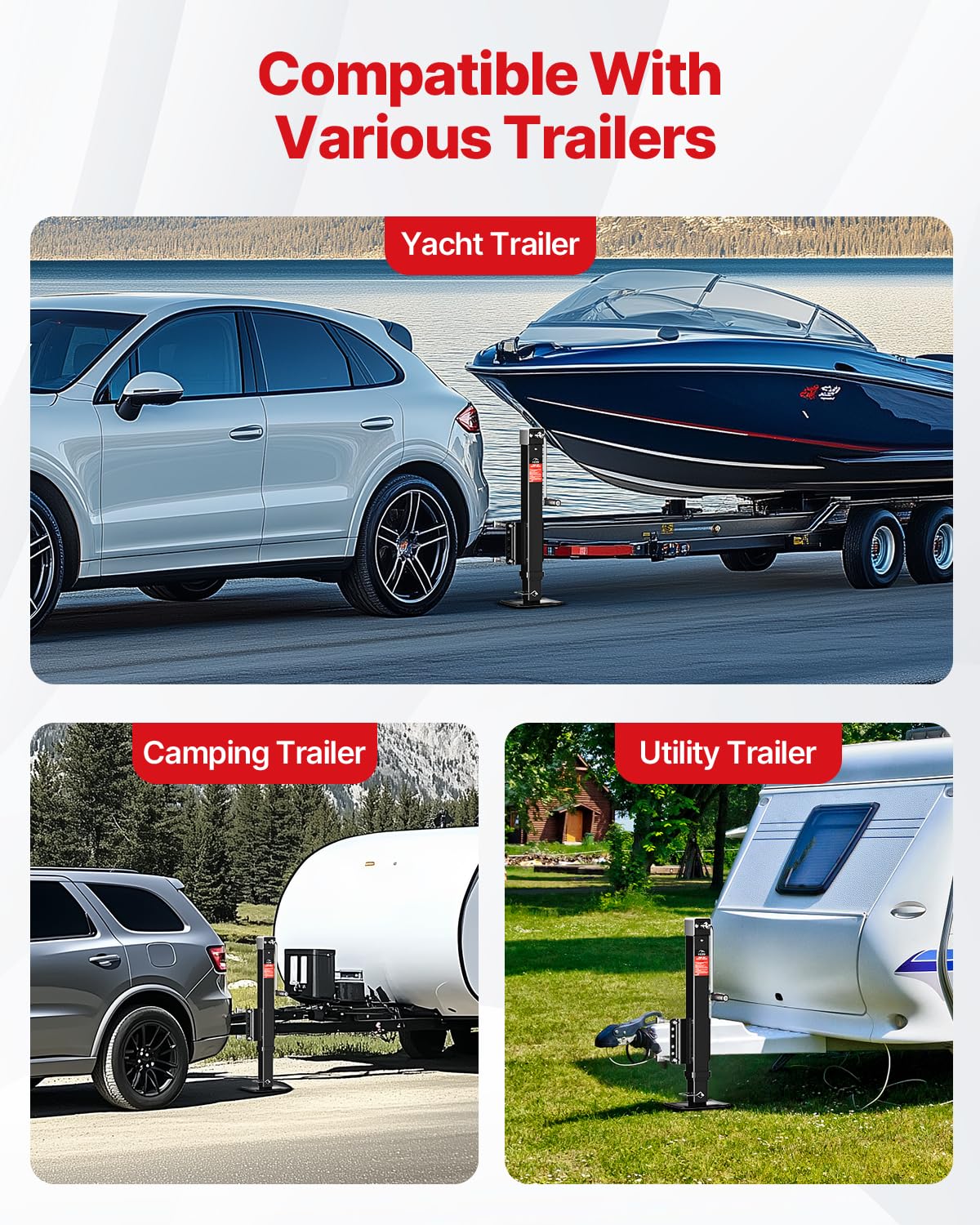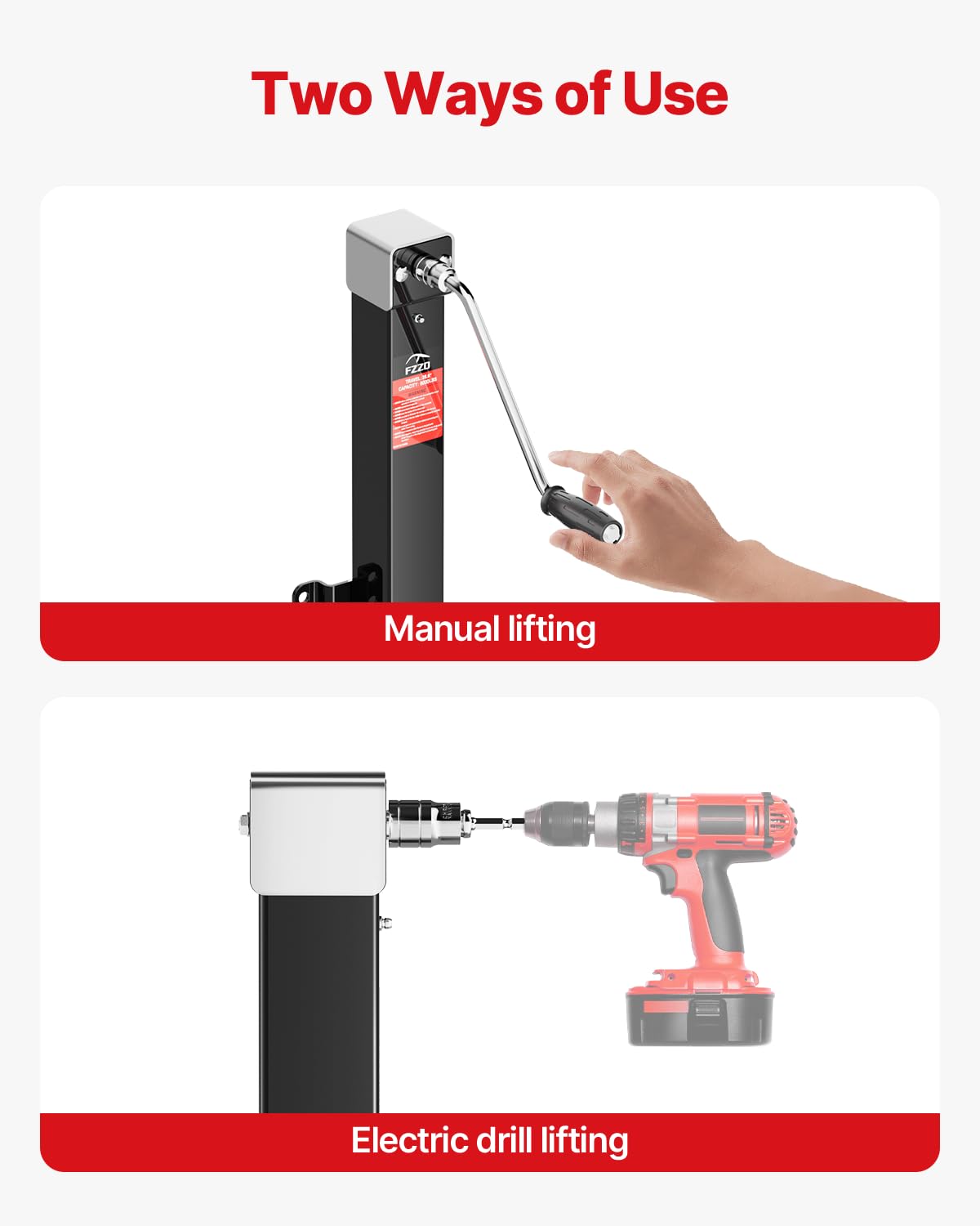 FZZD 8000 lbs Heavy Duty Trailer Jack, 20-24V Cordless Drill Compatible,28.6'' Lift, for Utility, Yacht, Boat Trailer Jack,Black