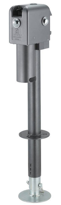 The Husky Brute is loaded with good features. The Brute is powerful with a capacity of up to 3,000 pounds. It is fast with a travel speed of 10 inches in as little as 43 seconds. It does the job with an 18 inch full stroke and 6 inch drop down leg. It is tough with hardened steel gears. It is secure with weather protected switches and a water resistant enclosure. It is versatile, fitting all A-frame couplers. It is economical with a low 15 ampere draw at rated load; and it is convenient, with three LED work lights, a built-in connector storage bracket not found on any other power jack, and a 30 ampere fuse and inline fuse holder.
