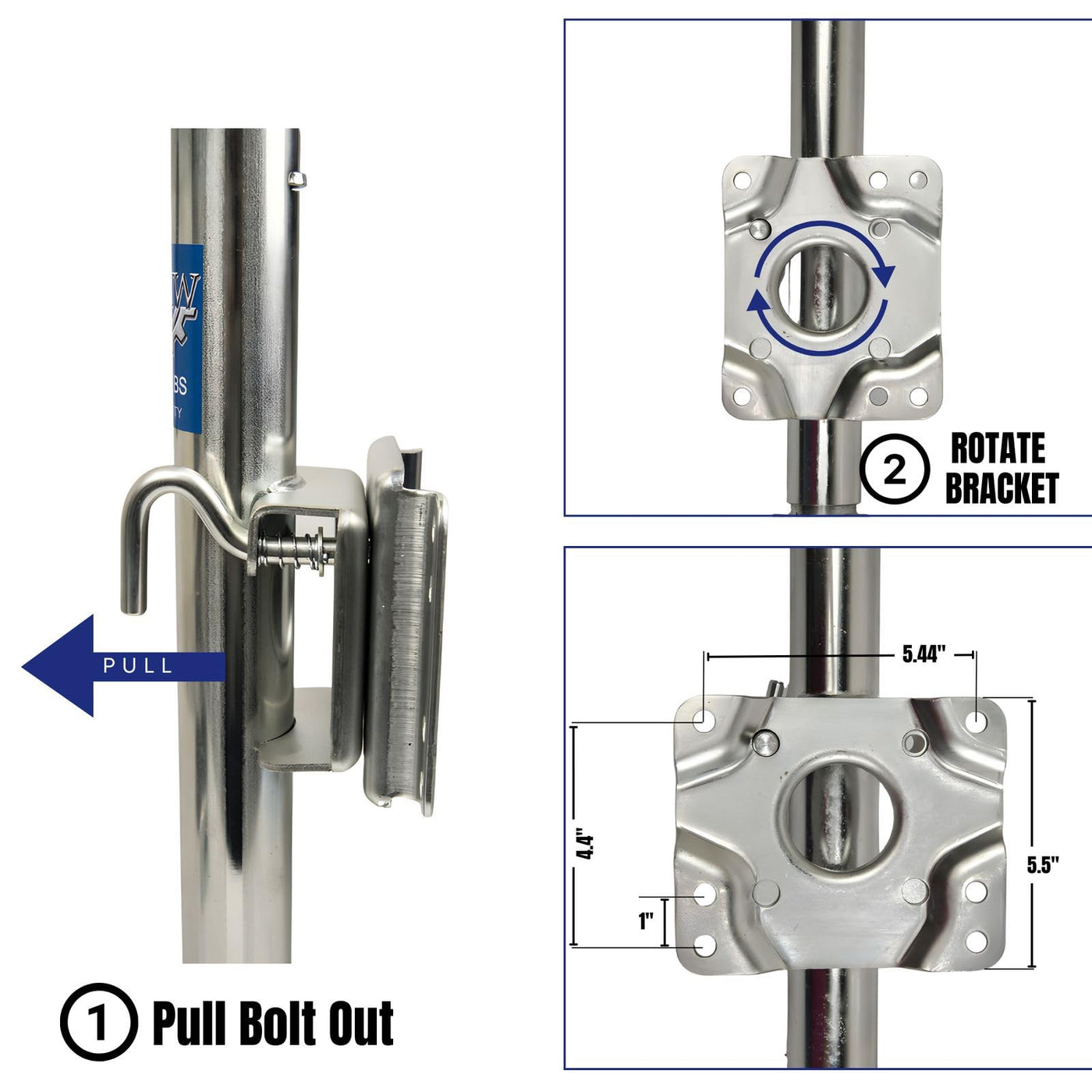 Jeremywell Jack Boat Rv Swing Away Camper Wheel Bolt On 1000 Lbs Trailer Side Swivel