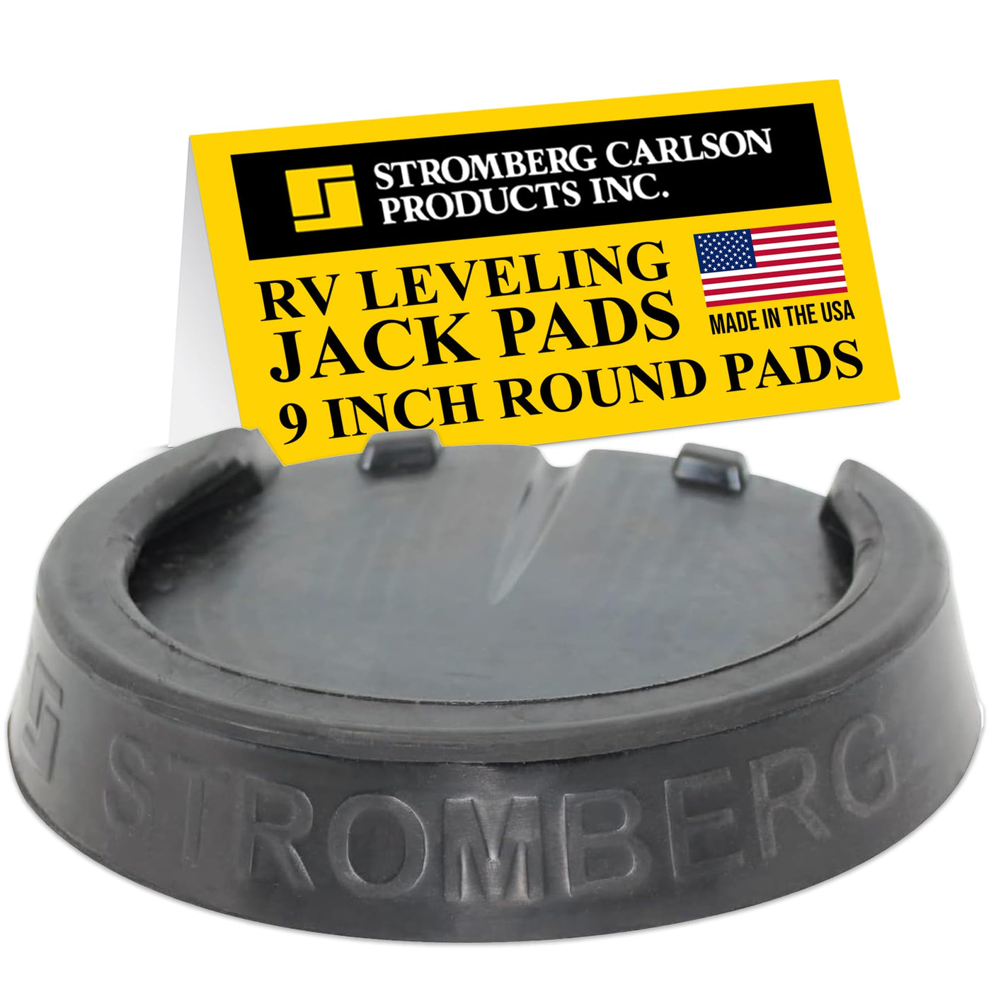 Q: What are the dimensions of the Stromberg Carlson RV Leveling Jack Pads?A: The Stromberg Carlson RV Leveling Jack Pads have a 9-inch round design, providing a stable and secure base for your RV's leveling jacks.