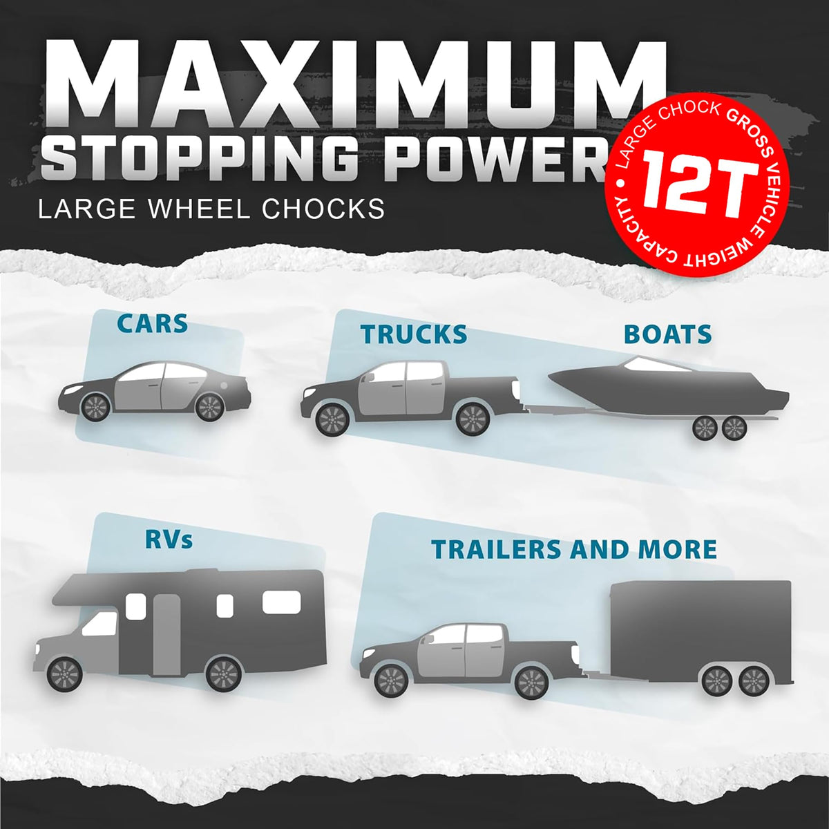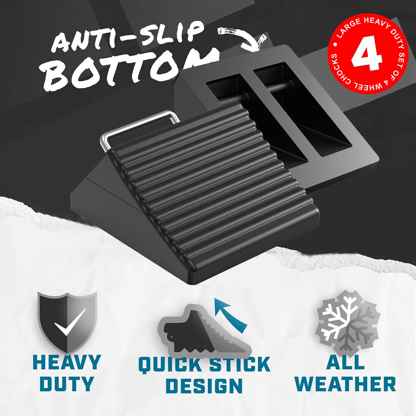 Wheel Chocks for Cars, RVs, Trucks, Trailers, and Vehicles G.V.W. up to 12T, 4 Pack - Anti Slip Bottom Tire Chock for All Weathe