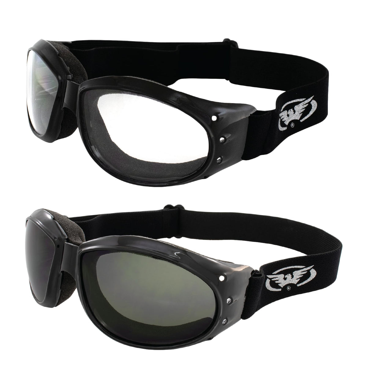 Global Vision Eliminator Deluxe Red Baron Style Padded Anti-Fog Motorcycle Goggles Black Frames (Clear And Smoke)