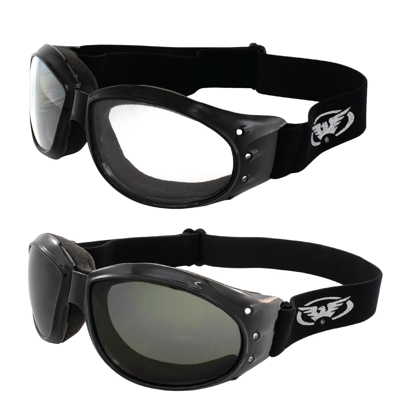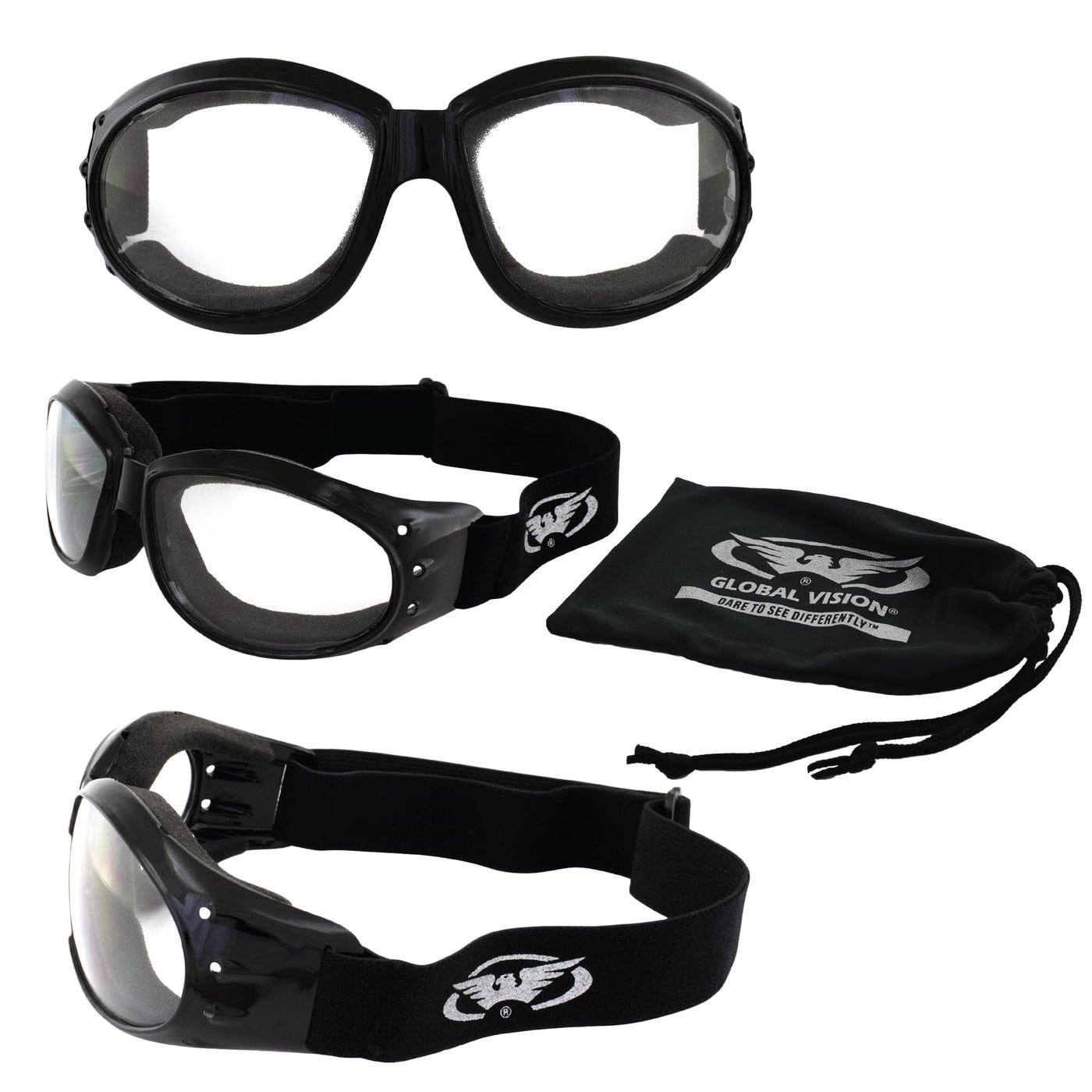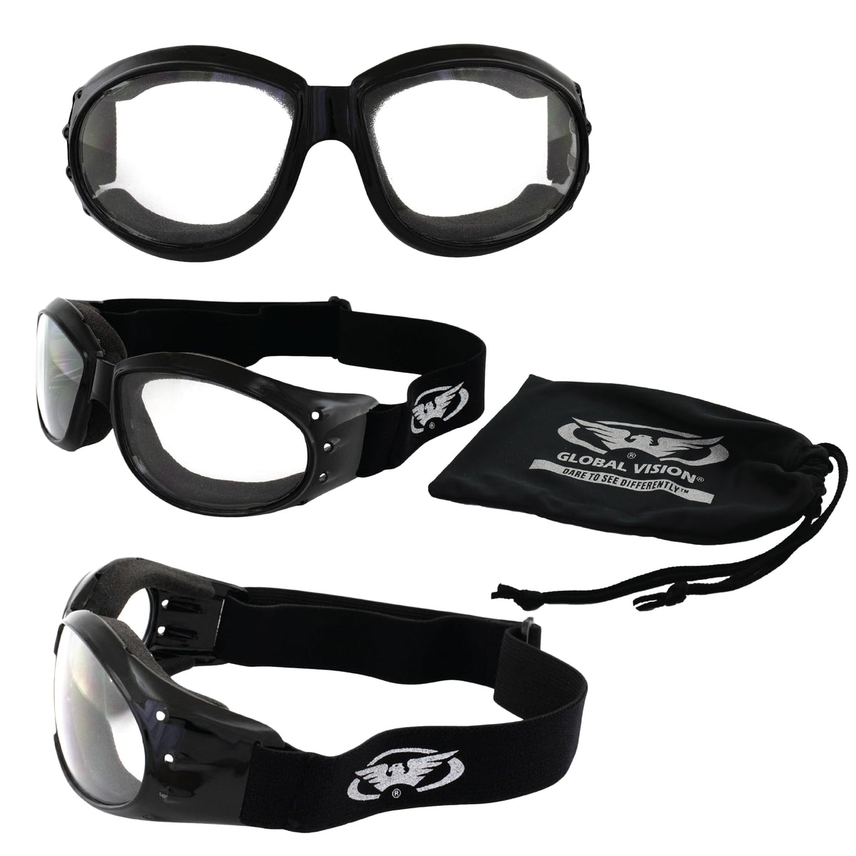 Blinded By The Fog? It'S Pretty Important To See Clearly When You'Re Riding, And The Sudden Onset Of Fog Can Blind You In An Instant. Thanks To Our Global Vision Eliminator Deluxe Motorcycle Goggles, You Can Say Goodbye To Foggy Lenses For Good. We'Re Proud To Have Upgraded Our Standard Eliminators With This Brand-New Feature To Make You Even Safer While You Ride. The Anti-Fog Coating On Your Polycarbonate Shatterproof Lenses Ensures Clear Vision All The Way To The Horizon. With Our 2-Pack, You'Ll Get A Pair Of Clear Lens Goggles For Night Riding As Well As Super Dark Lenses For The Day. With Our 3-Pack You'Ll Also Get A Pair Of Yellow Lenses Which Are Great For Dawn, Dusk, Fog Or Night Riding. Each Pair Is Encased In Black Padded Frames So Soft That You Won'T Feel The Frame'S Plastic Edges Even On The Highway. The Vintage Red Baron Look This Goggles Portray Is Timeless And Great For Any Rider. Additional Features Include Scratch-Resistant Coating And Shatterproof Polycarbonate Lenses Complete With A Uv400 Coating For Maximum Uv Protection From The Sun'S Harmful Rays. Side Venting Helps Prevent Fogging. You Always Go The Distance And Then Some, So Make Sure You Strap On The Ultimate Protection Needed For All Of Your Riding Adventures. These Goggles Are Sure To Keep You Safe And Stylish No Matter Where The Road Takes You. Each Pair Comes With A Carrying Pouch For Safekeeping.