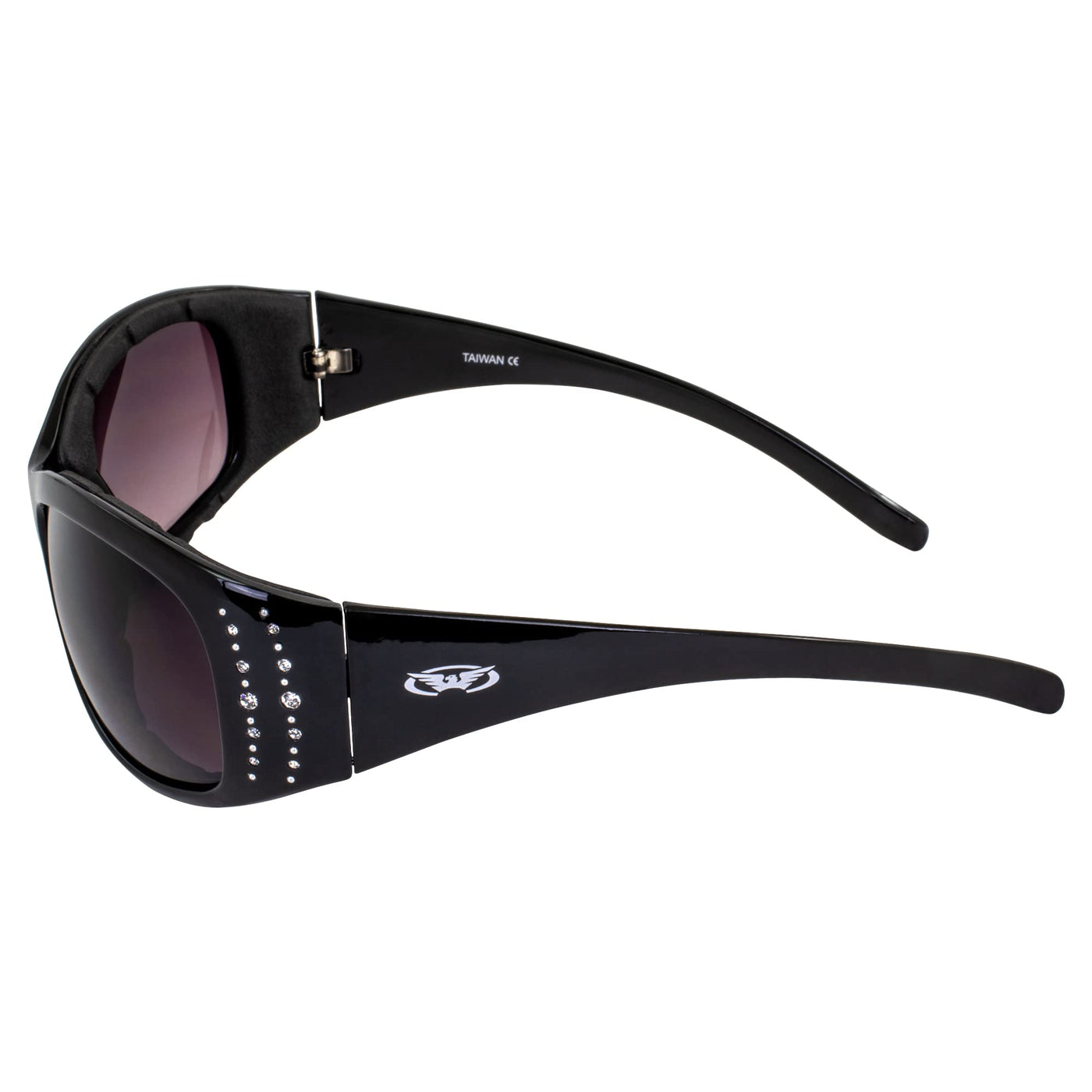 Global Vision Eyewear Marilyn 2 Plus Motorcycle Glasses For Women Black Frame Bling-Ed Out With Rhinestones (Smoke)