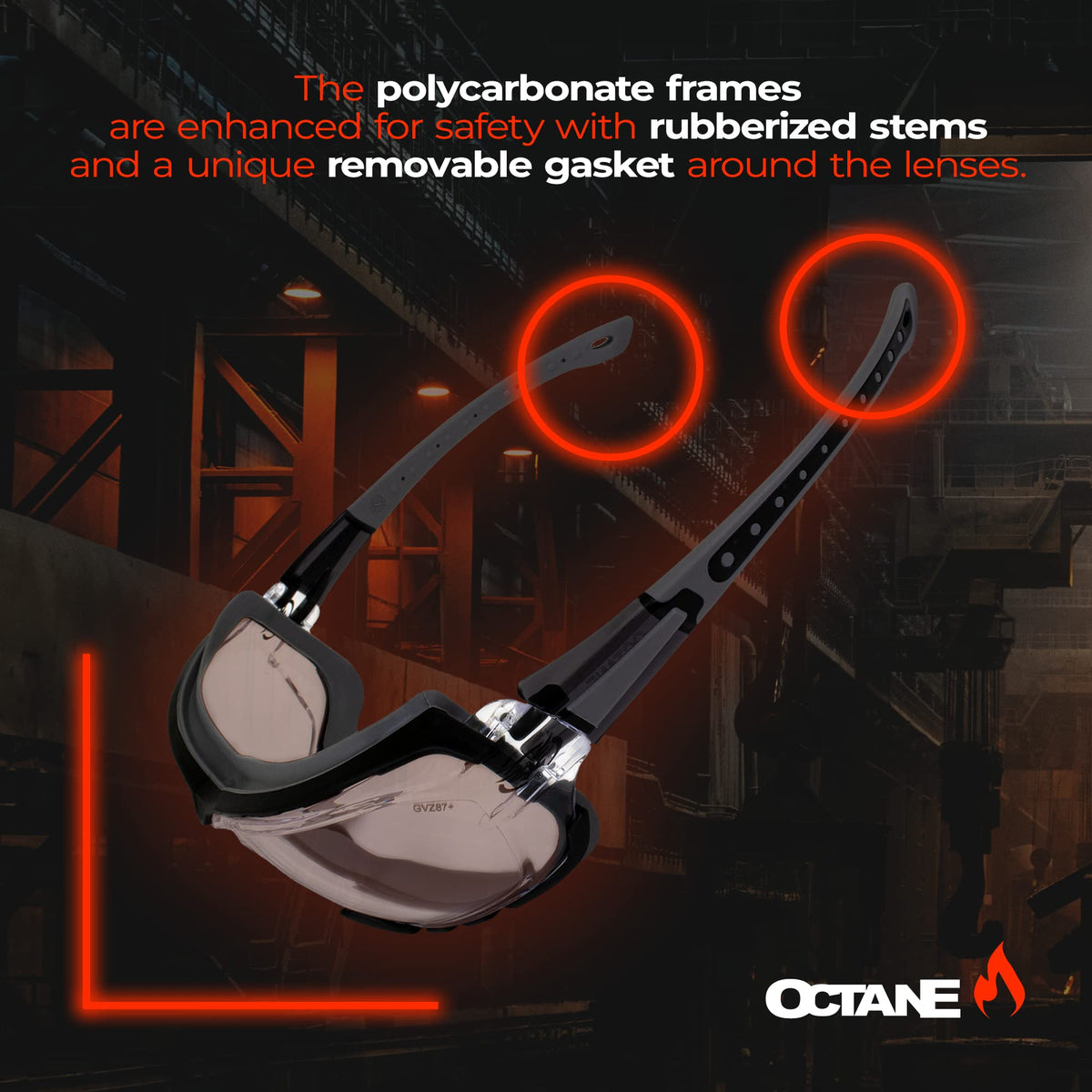 The Global Vision Eyewear Octane Is Fuel For Your Fun -- And Protection. The Octane A/F Gray Is Jacked With Features Whether You'Re Riding Across The Country Side Or Hard At Work On The Job. The Polycarbonate Frames Are Enhanced For Safety With Rubberized Stems And A Unique Removable Black Gasket Around The Lenses. Rubber Seals That Form Fit To The Face Are Yet Another Measure That Keeps Unwanted Dust Or Wind From Hampering Your Vision In This Clear Pair Of Eyewear That Enhances Your Performance In Low Light Or Even The Dark. The Nose Pads Are Double Injected With Rubber And A Strap Is Included To Help Keep These Specs On The Spot. Octane Is The Juice For What You Need To Get Done And This Pair Of Glasses Keep Your Vision Clear.