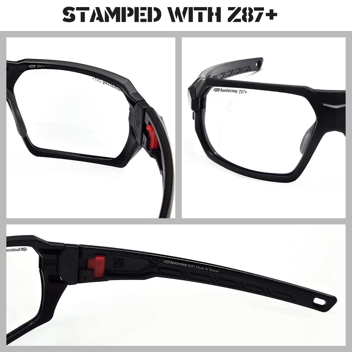 In life, we are all adventurers. We try new things and go different places to explore for our life vision with our own eyes. In HTS HUNTERSKY, we aim to guard your eyes without any compromise. Our glasses serve you with the best vision to enjoy sights, help you accomplish your goals and go beyond the boundaries. Inspired by the iconic armor suit, he geometric design and the detachable structure is the perfect combination of defense and functionality of a strengthened eye protector, just like armor suit, to protect your eyes from danger. The eyeglasses combine safety and precise vision that gives your eyes the ultimate protection, allows you to act boldly and achieve your goals. Safety is always our first priority when it comes to eye protection. Dust, wind, flying pieces, shrapnel, droplets and splashes, unburned powder sprays, impacts of collisions or too much exposure to sunlight cause different types of eye injuries; some are severe and irreversible and eventually result in blindness. Our glasses are made from ballistic-rated material with maximum eye coverage lens and UV400 protection. You can enjoy most activities freely as your eyes are in good hands. Optimizing eye comfort and proper fitting are pivotal to wear glasses for all day. Poor optical-quality lenses cause fuzzy vision, visual distortion, eye strains, headache or dizziness or personal hazard. Our lenses meet ANSI Z87.1+ optical requirements, have superior optical clarity to see more clearly and spot moving objects more quickly. The soft and non-slip nose pads are adjustable for a custom and secure fit. When you are engaged in activities, they sit in place and don't slide down or move out. You will be more focused and this helps you to take your performance to next level. Join us now to get yourself ready for the next adventure!