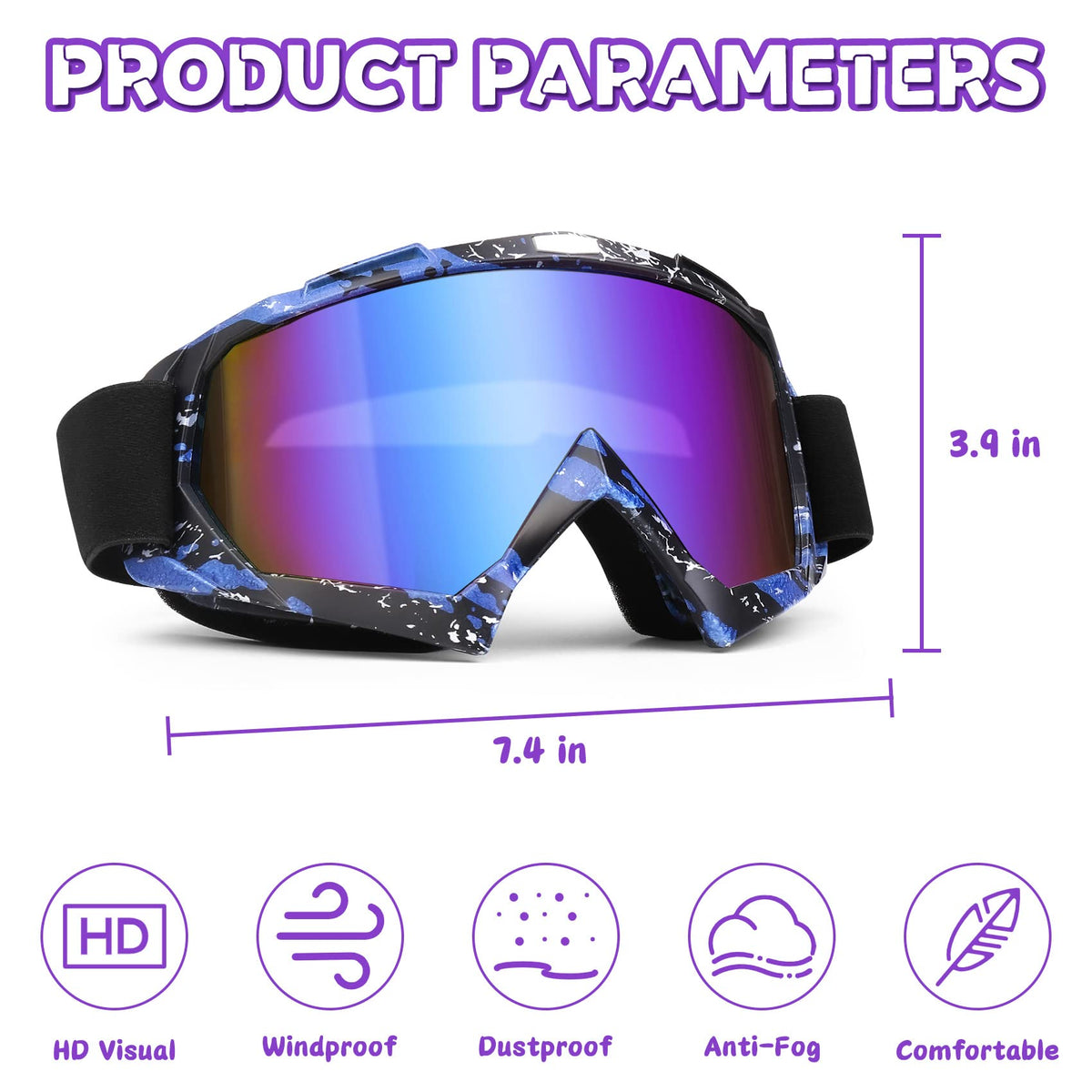 Micnaron ATV Goggles, 2-Pack Dirt Bike Goggles, Motorcycle Goggles, MX Goggles Powersport Goggles Ski Goggles for Men Women Adul