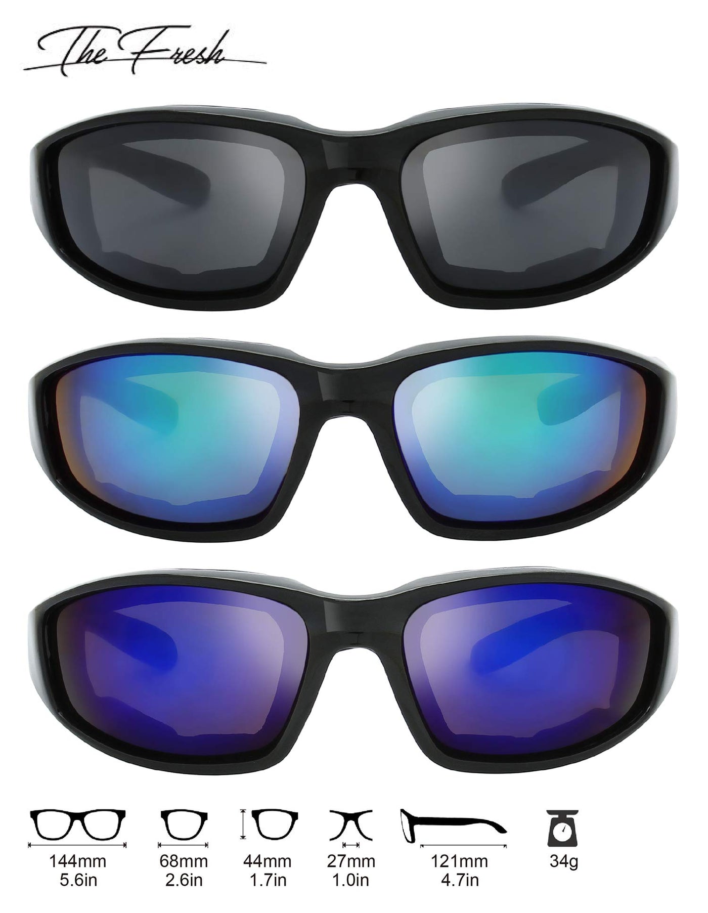 The Fresh Motorcycle Riding Glasses Padded Frame Lens Block 100% UVB for Outdoor Activity Sport (1402-Shiny Black, Grey, Green M
