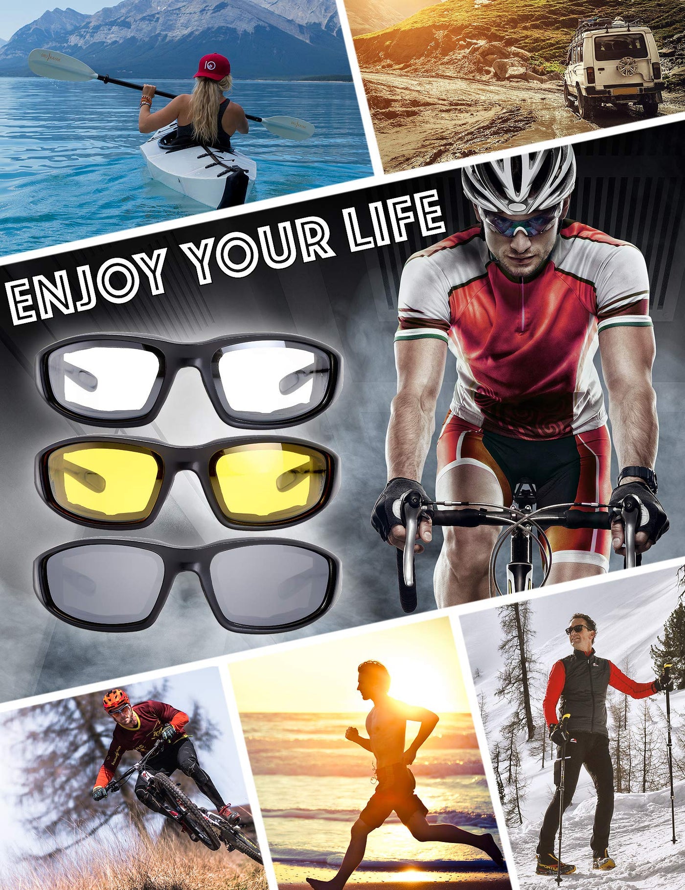 The Fresh Motorcycle Riding Glasses Padded Frame Lens Block 100% Uvb For Outdoor Activity Sport (1405-Matte Black, Clear, Yellow