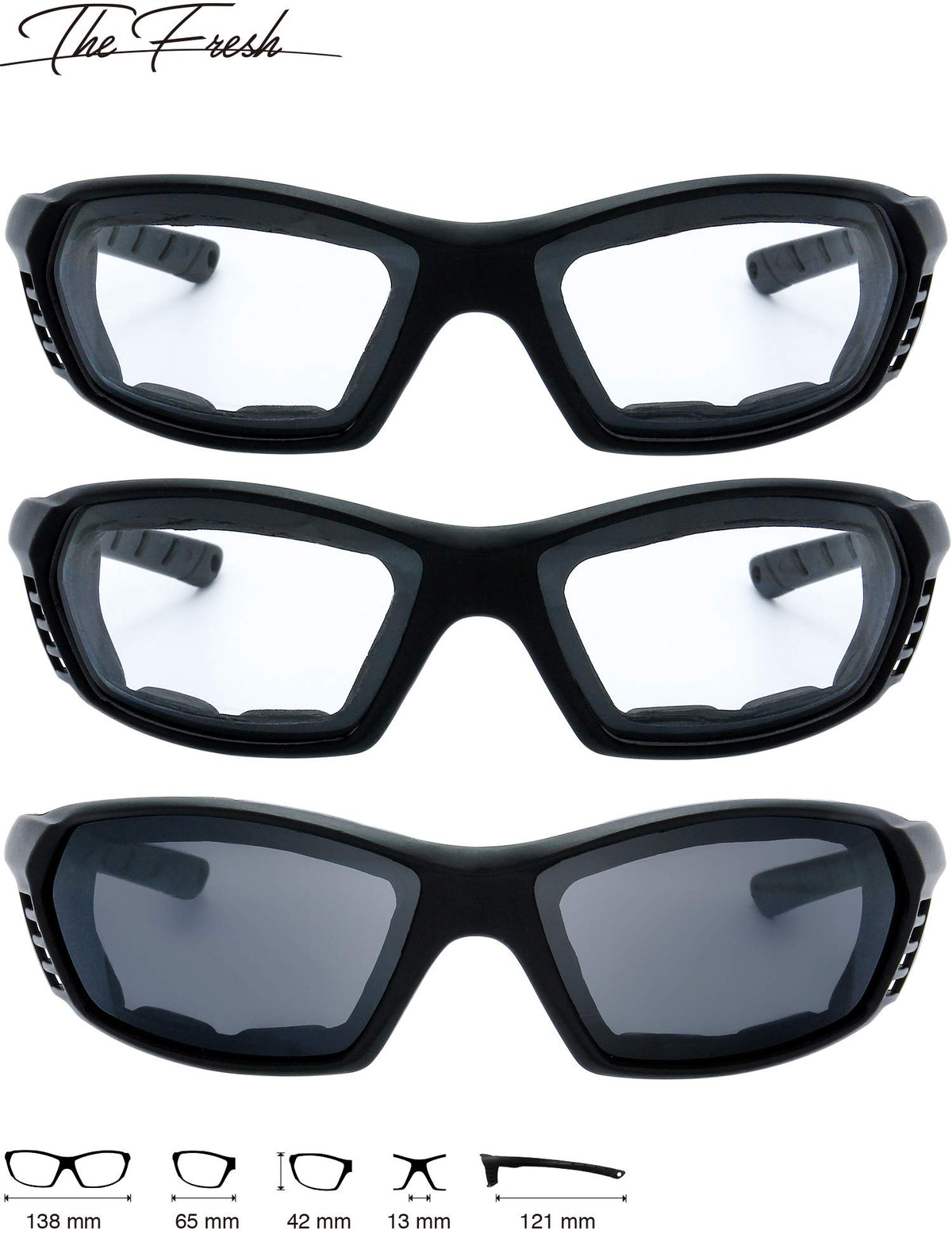 The Fresh Motorcycle Riding Glasses Padded Frame Lens Block 100% UVB for Outdoor Activity Sport (20-Black, Clear*2, & Grey)