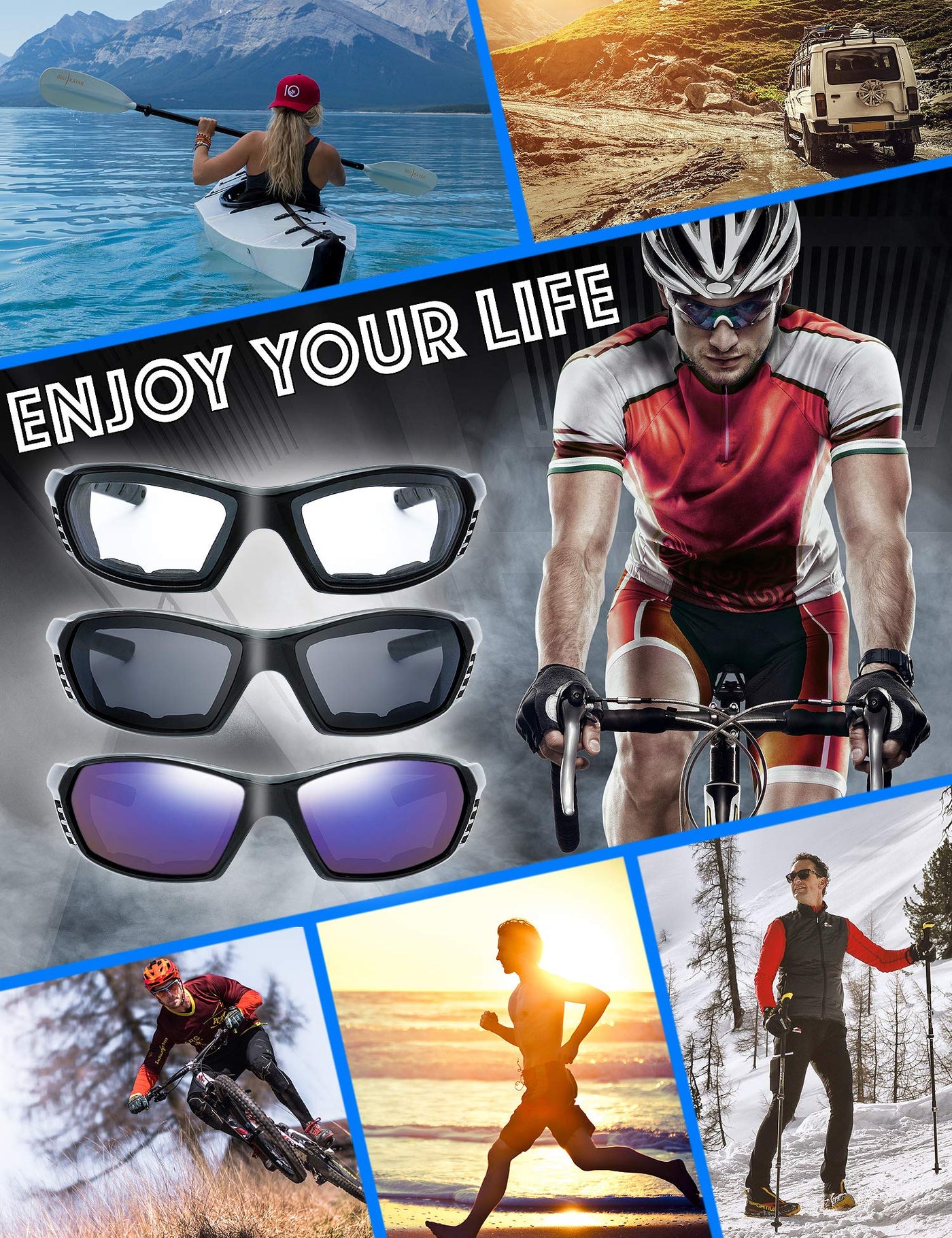 The Fresh Motorcycle Riding Glasses Padded Frame Lens Block 100% Uvb For Outdoor Activity Sport (24-Black, Clear, Grey, & Blue M