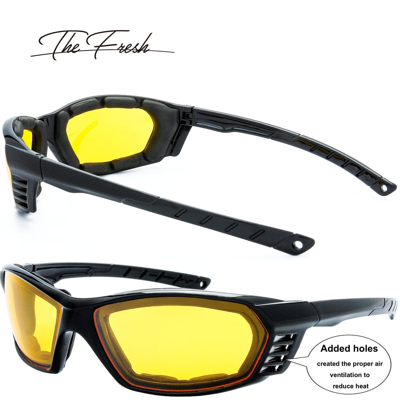 The Fresh Motorcycle Riding Glasses Padded Frame Lens Block 100% Uvb For Outdoor Activity Sport (27-Black, 3 Pairs Of Yellow)