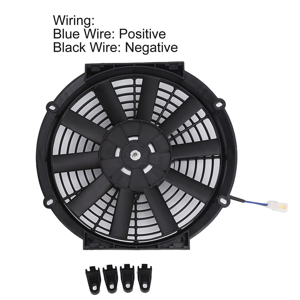 How To Use: 1. The Blue Wire Is Connected To The Positive Pole And The Black Wire Is Connected To The Negative Pole. 2. It Can Be Used After Plugging In. Specification: Item Type: Cooling Fan Radiator Material: Abs + Iron Color: Black Application: Universal Voltage: Dc 24V Power: 80W Air Volume: 2100Rpm Fan Size: Approx. 10In Motor: 24V/80W Cooling Spec: Up To 1600Cfm Package List: 1 X Cooling Fan Radiator 4 X Mounting Brackets