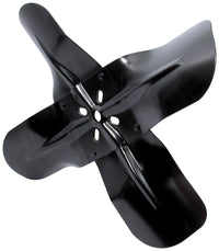 Steel high RPM fans have a universal bolt pattern with a 5/8'' pilot hole. Riveted reinforcement plate adds strength and high pitch 32 degree blades increase airflow. Painted black to resist corrosion.
