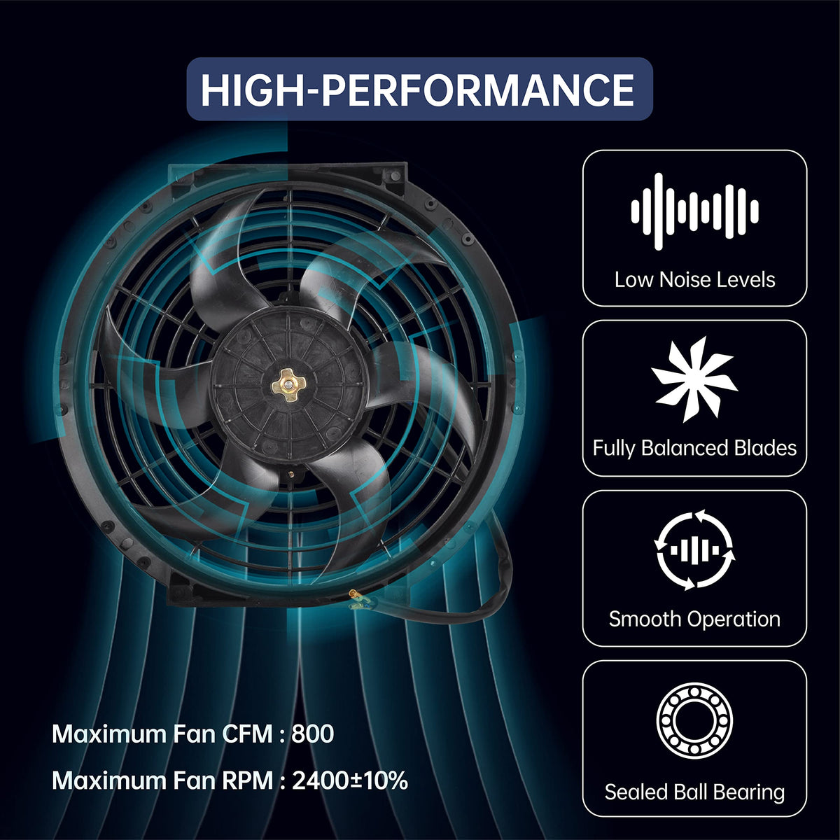 BATONECO 10 Electric Radiator Cooling Fan Thermostat Wiring Switch Relay Kit, 12V Cooling Radiator Fan with 120W 1000 CFM Slim