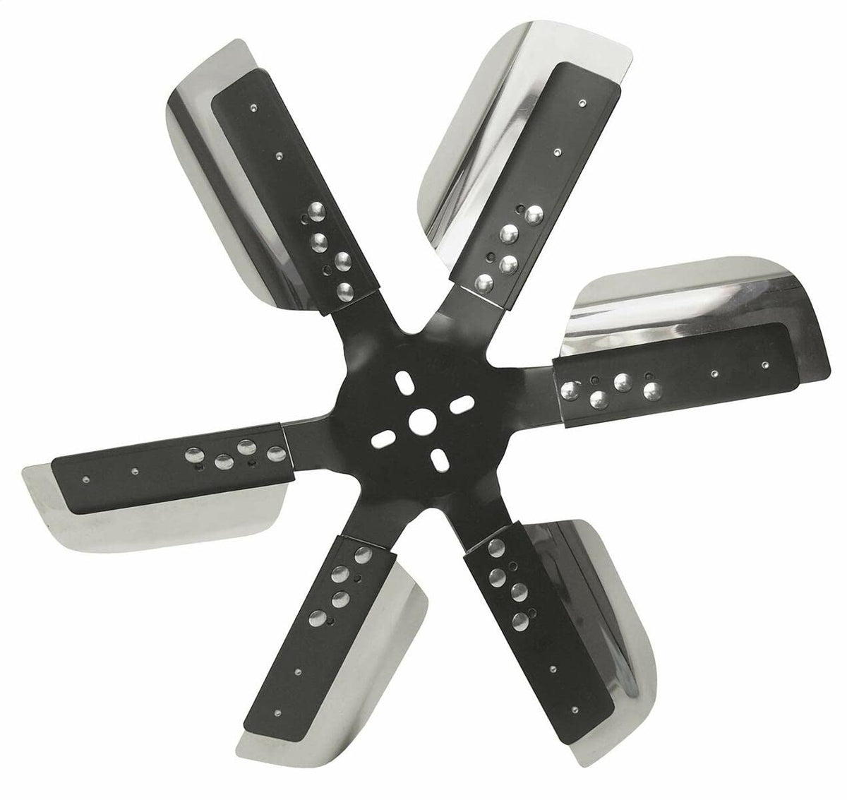 19 Heavy Duty Stainless Steel Standard Rotation Flex Fan, Black Hub Our 19 Heavy Duty Standard Rotation Fan Features Thick Black Steel Hubs And 6 Stainless Reinforced Blades With A Large Surface Area That Improve Performance And Fuel Economy And Is Rated Up To 10,000 Rpm. The Large Surface Area Of The Blades Pull More Air At Lower Speeds Than Other Flex Fans. Specifications Diameter 19-1/4 Flange Bolt Spacing 1-3/4 - 2-1/4 Depth 2-3/8 Mounting Surface To Front 1/2 Mounting Surface To Rear 1 7/8 Rotation Standard (Clockwise) Hub Construction Powder Coated Black Steel Blade Construction Stainless Features Improves Performance And Mileage Heavy Duty Steel Hubs Durable Stainless Blades Rated Up To 10,000 Rpm Large Surface Area Pulls More Air At Low Speeds Reinforced Blade Construction Extends Fan Life 19 Standard Rotation Flex Fan Design