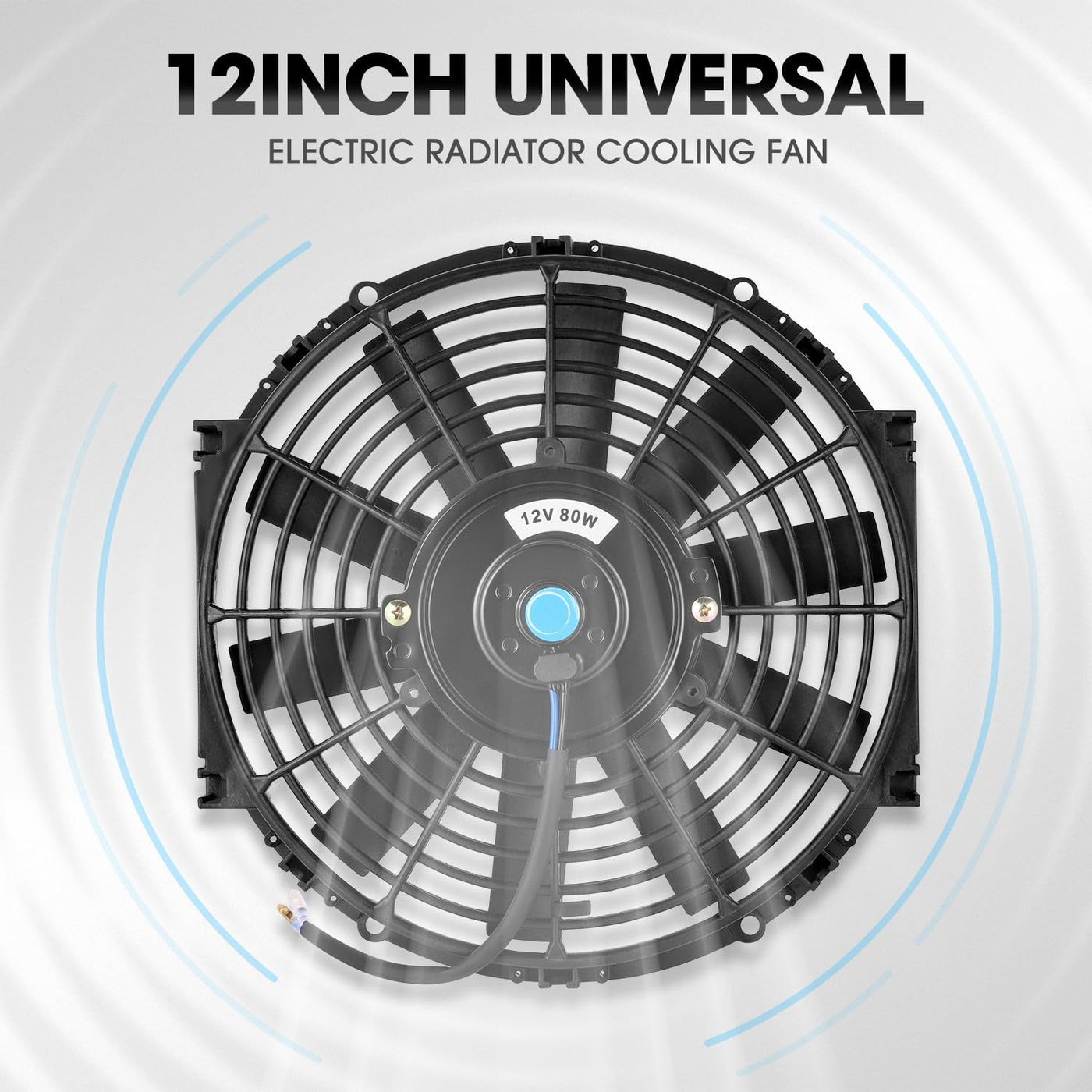 Dna Motoring 2Pcs 12Inch Electric Radiator Cooling Fan Thermostat Wiring Switch Relay Kit, Universal High Performance Slim Fan P