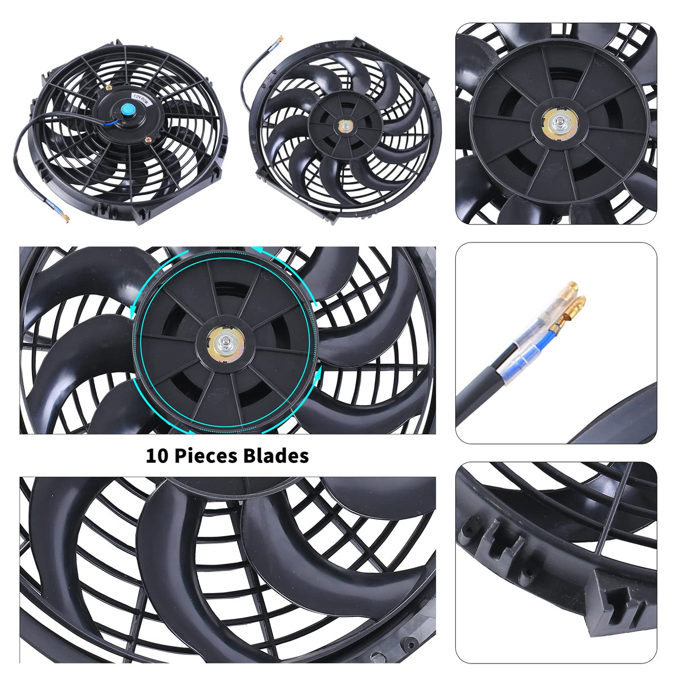 Fgjqefg 12 Inch Universal Slim Fan Push Pull Electric Radiator 12V 80W High Performance Cooling Fan Mount Kit Black 2 Pcs