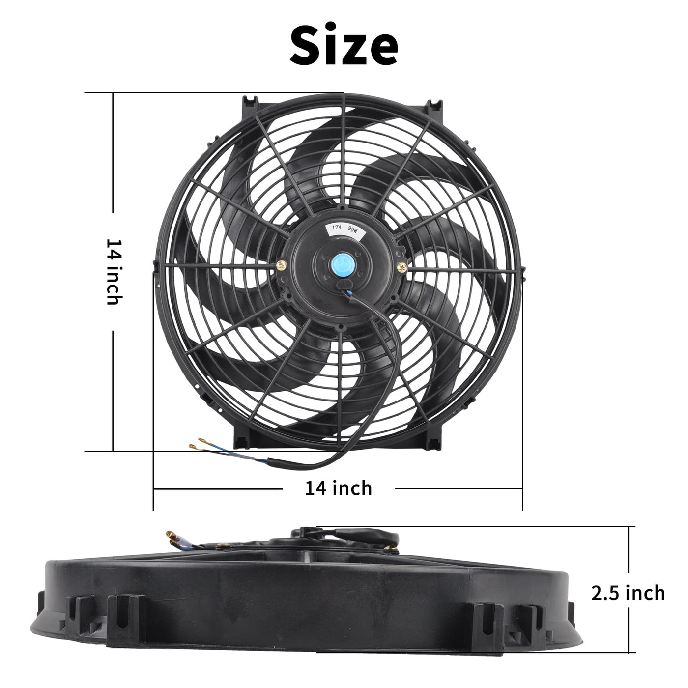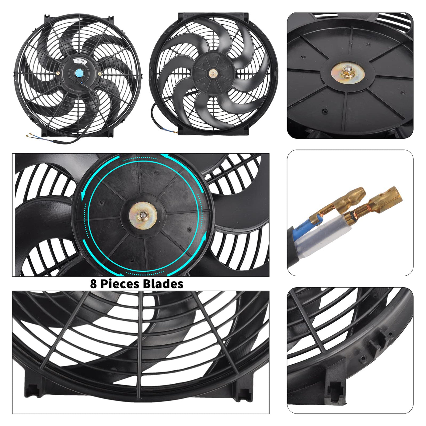 Fgjqefg 14 Inch Black Universal Slim Fan Push Pull Electric Radiator 12V High Performance Cooling Fan Mount Kit Set Of 2