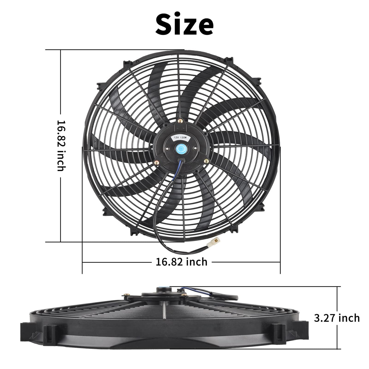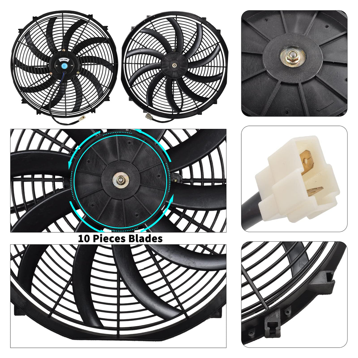 Fgjqefg 16 Inch Black Universal Slim Fan Push Pull Electric Radiator 12V 120W High Performance Cooling Fan Mount Kit Set Of 2