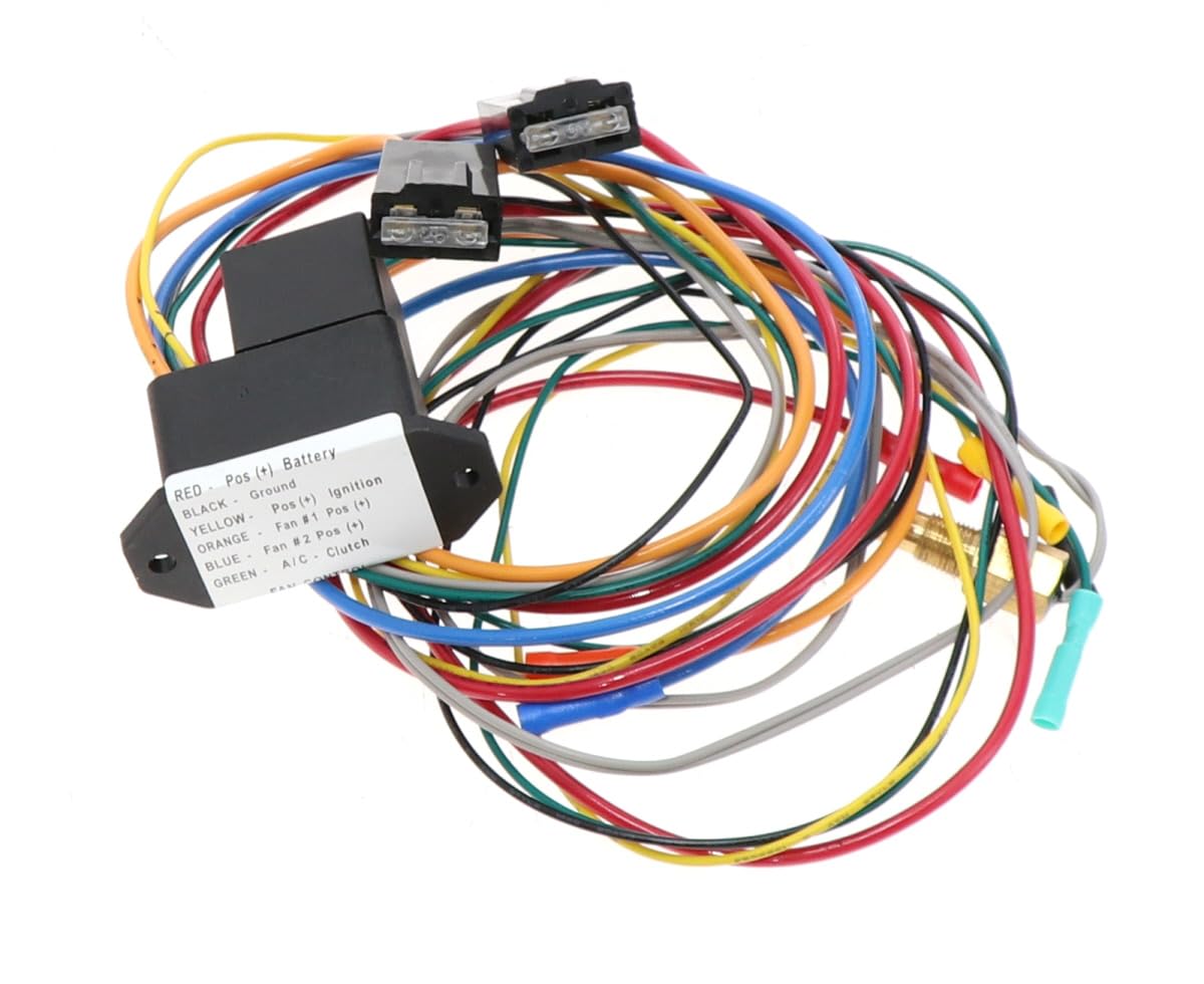 It is a premium adjustable fan control with Screw-In Type/Thread-in probe that installs in the radiator fin section. It includes wire harness and air conditioning override relay. It is adjustable from 160 to 210 degrees Fahrenheit. It powers two fans up to 30 Amps.Adjustable from 132°F – 248°F across all controllers.