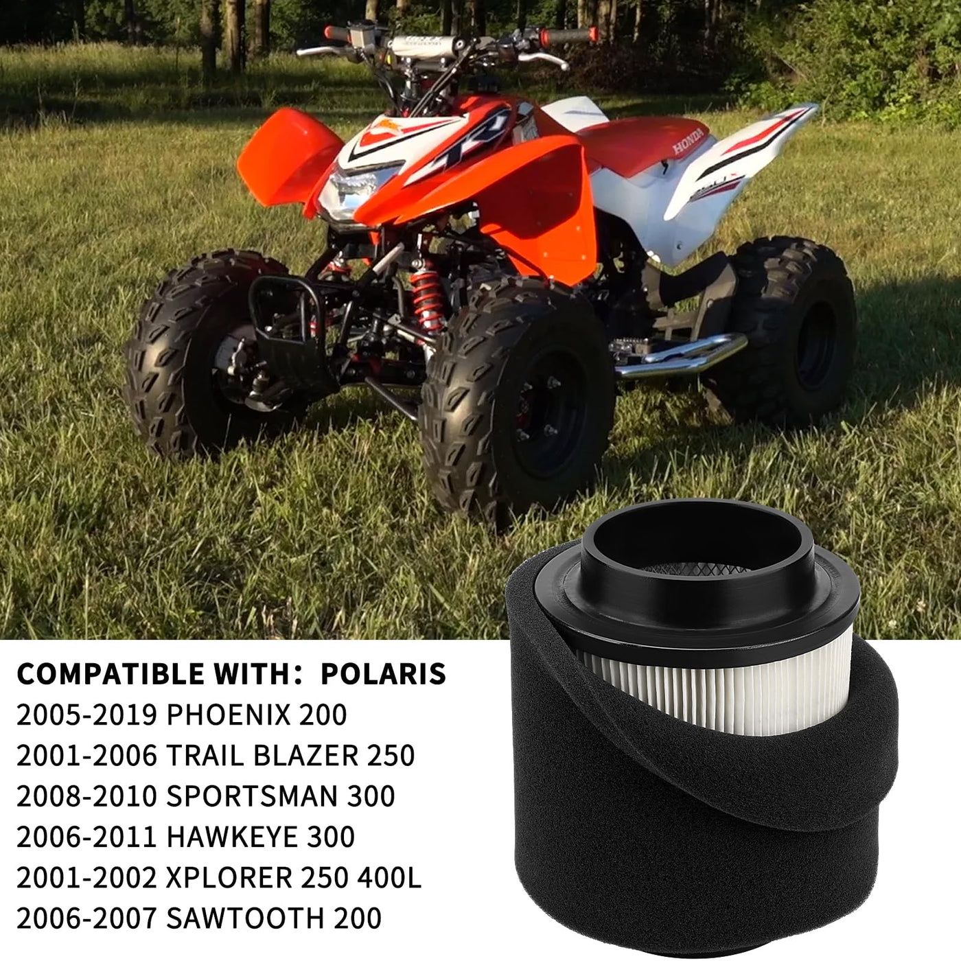 Q: What models are compatible with the 0452306 1253355 Air Filter?A: The 0452306 1253355 Air Filter is compatible with several Polaris models, including the Hawkeye 300 (2006-2011), Phoenix 200 (2010-2019), Sportsman 300 (2008-2010), Trail Blazer 250 (2001-2006), and Xplorer 400L (2001-2002), among others. Always verify your vehicle's model and year before purchasing.