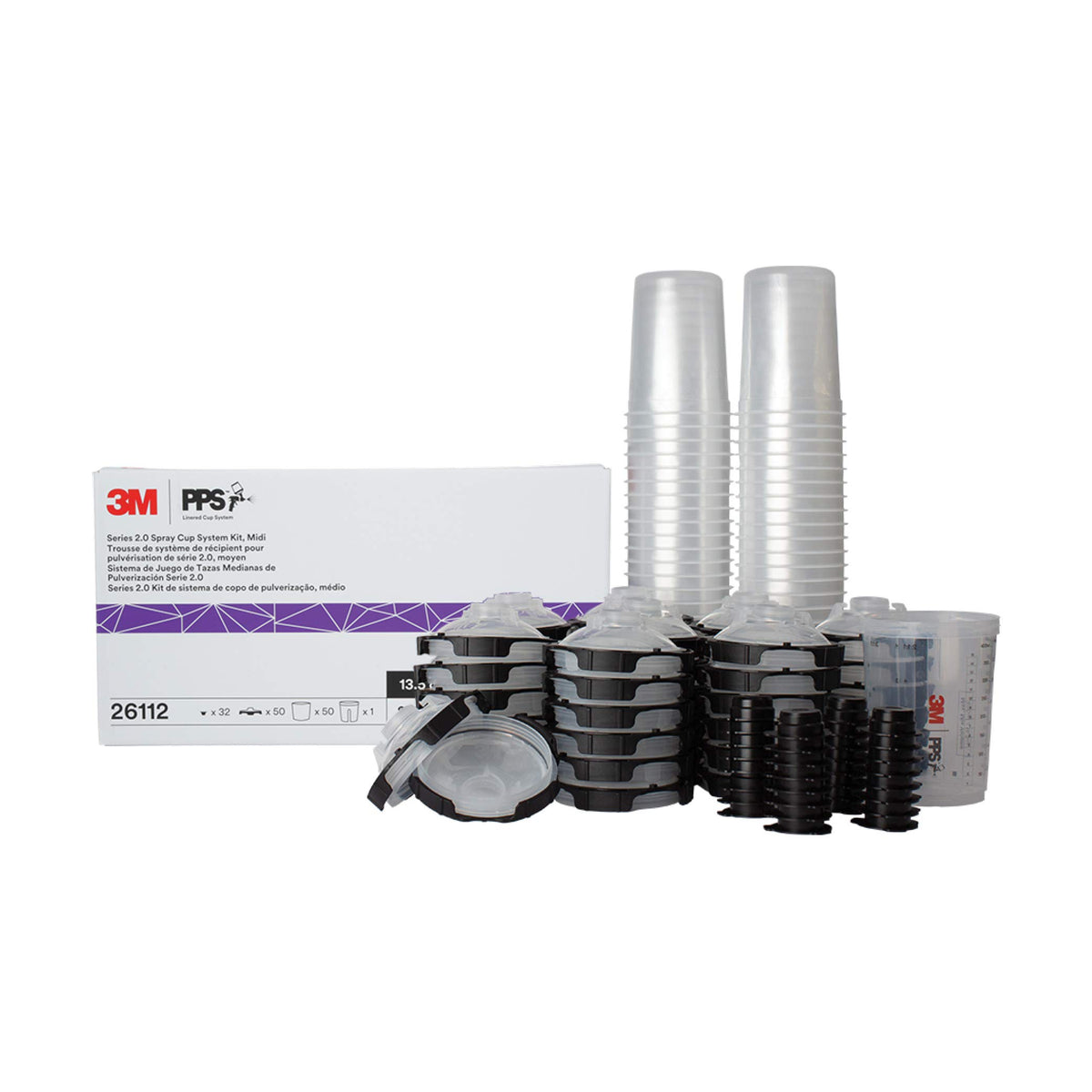 Q: What is included in the 3M PPS 2.0 Spray Gun Cup Kit?A: The 3M PPS 2.0 Spray Gun Cup Kit includes 1 reusable paint cup, 50 disposable lids, 50 disposable liners, and 32 sealing plugs, providing a comprehensive solution for your painting needs.