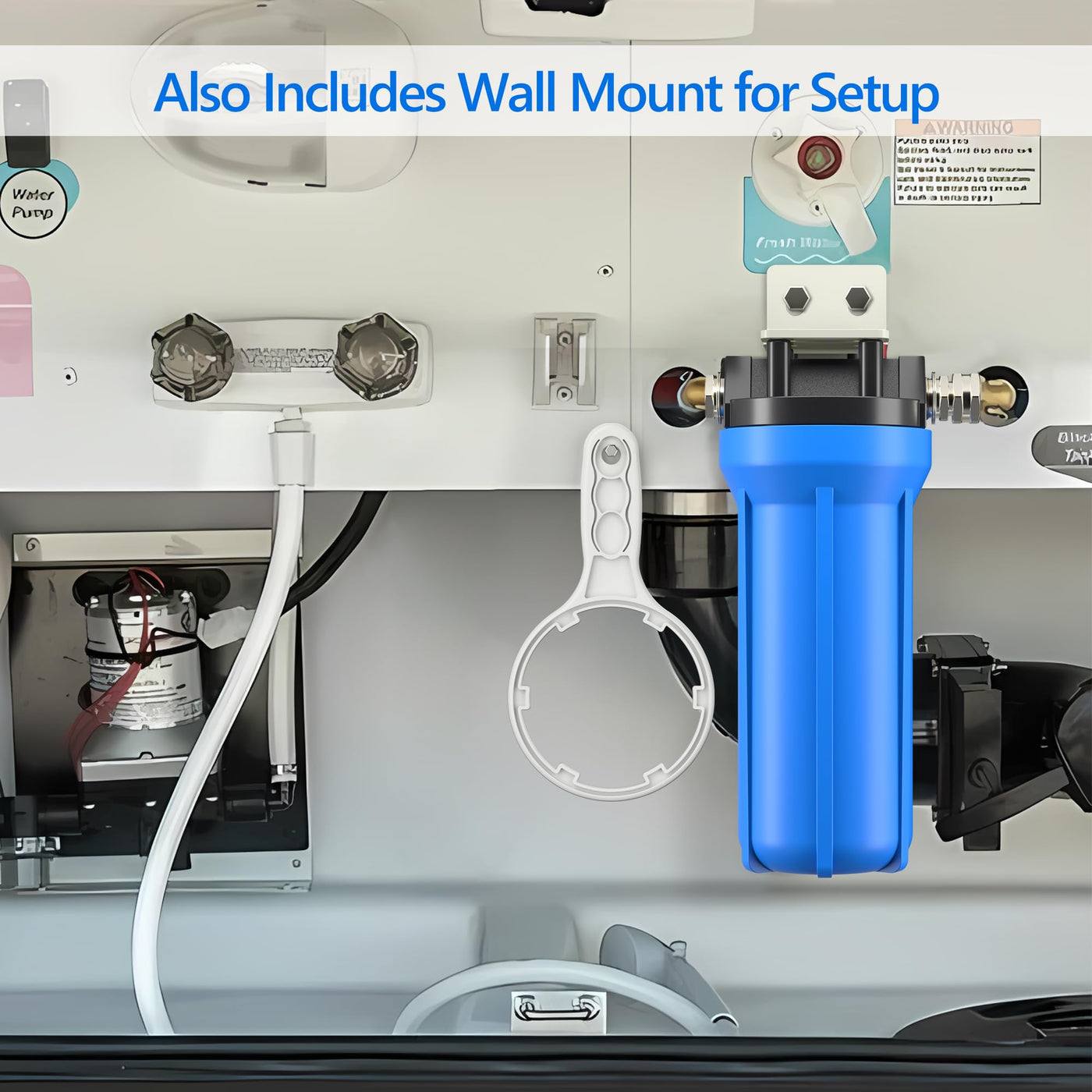 4-Layer RV Water Filter with Stand and 7,000 Gallons Capacity, 3/4'' GHT Metal Threads Inline Water Filter, Removes Sediments, C