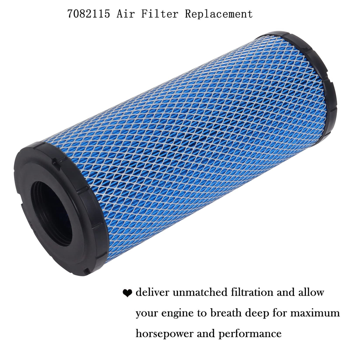 Q: What are the benefits of using the 7082115 Air Filter Replacement?A: The 7082115 Air Filter Replacement enhances engine performance by providing superior filtration, allowing your engine to breathe better, which can increase horsepower and overall efficiency while extending the life of your engine.