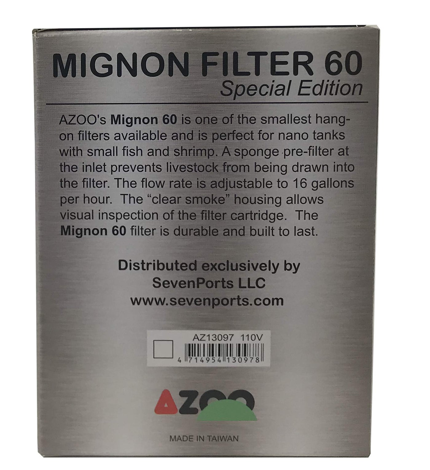 Q: What size aquariums is the AZOO Mignon Filter 60 suitable for?A: The AZOO Mignon Filter 60 is rated for aquariums up to 3-1/2 gallons, making it an ideal choice for nano aquariums.