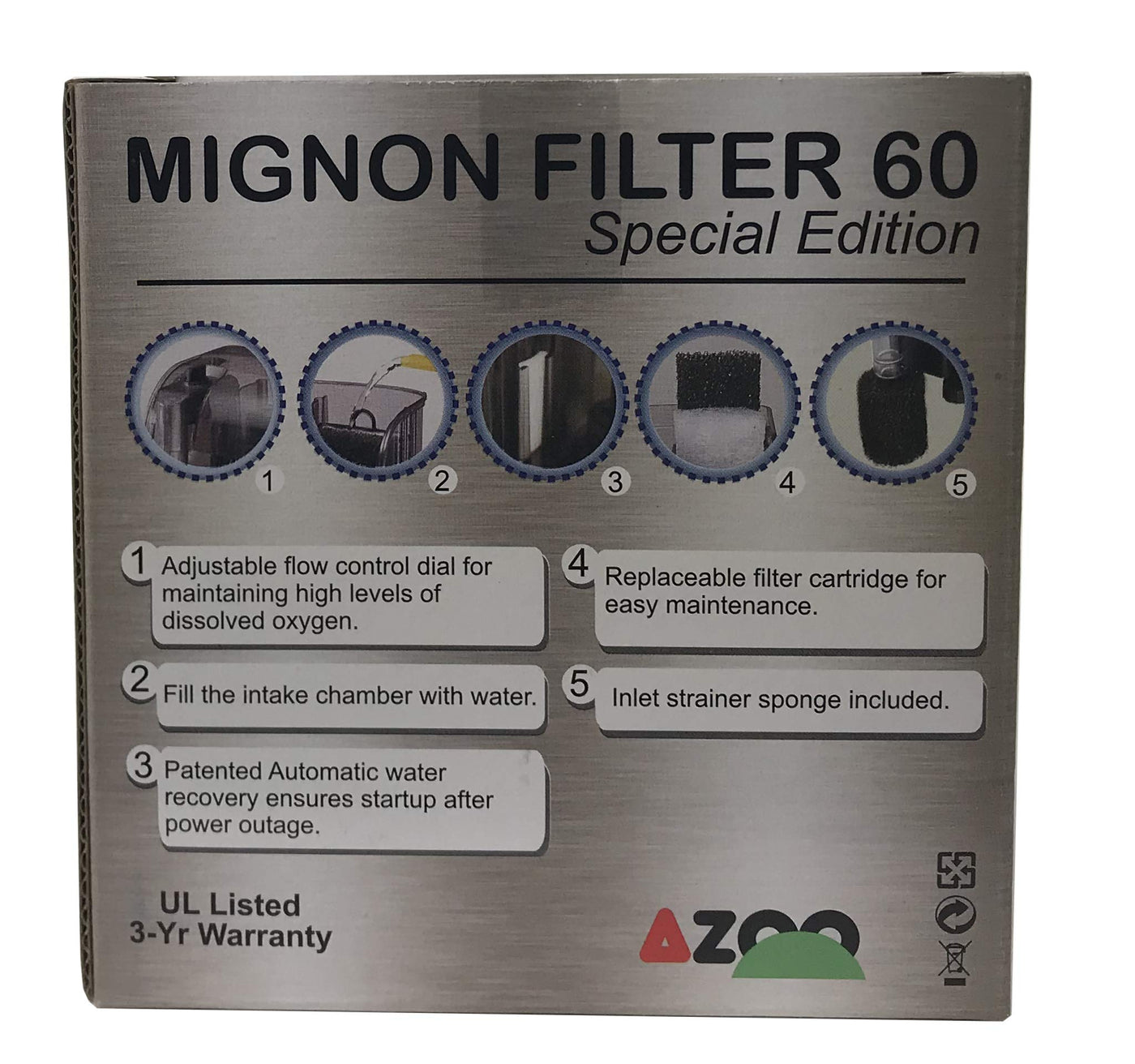 Q: Is the AZOO Mignon Filter 60 easy to install?A: Yes, the compact design of the AZOO Mignon Filter 60 allows for easy installation on the back of your aquarium, making it user-friendly for all aquarium enthusiasts.