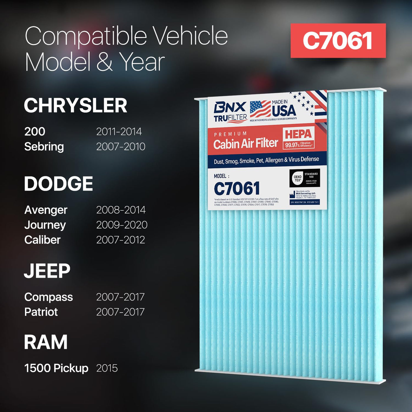 Bnx Trufilter C7061 Cabin Air Filter, Hepa 99.97%, Made In Usa, Compatible With Nissan: Sentra, Rogue