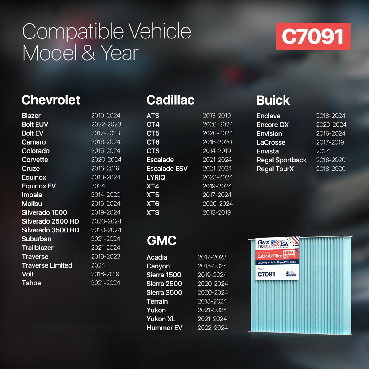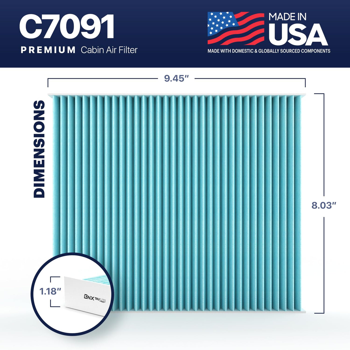 Bnx Trufilter C7091 Cabin Air Filter, Hepa 99.97%, Made In Usa, Compatible With Select Chevrolet: Silverado, Impala, Cruze, Mali
