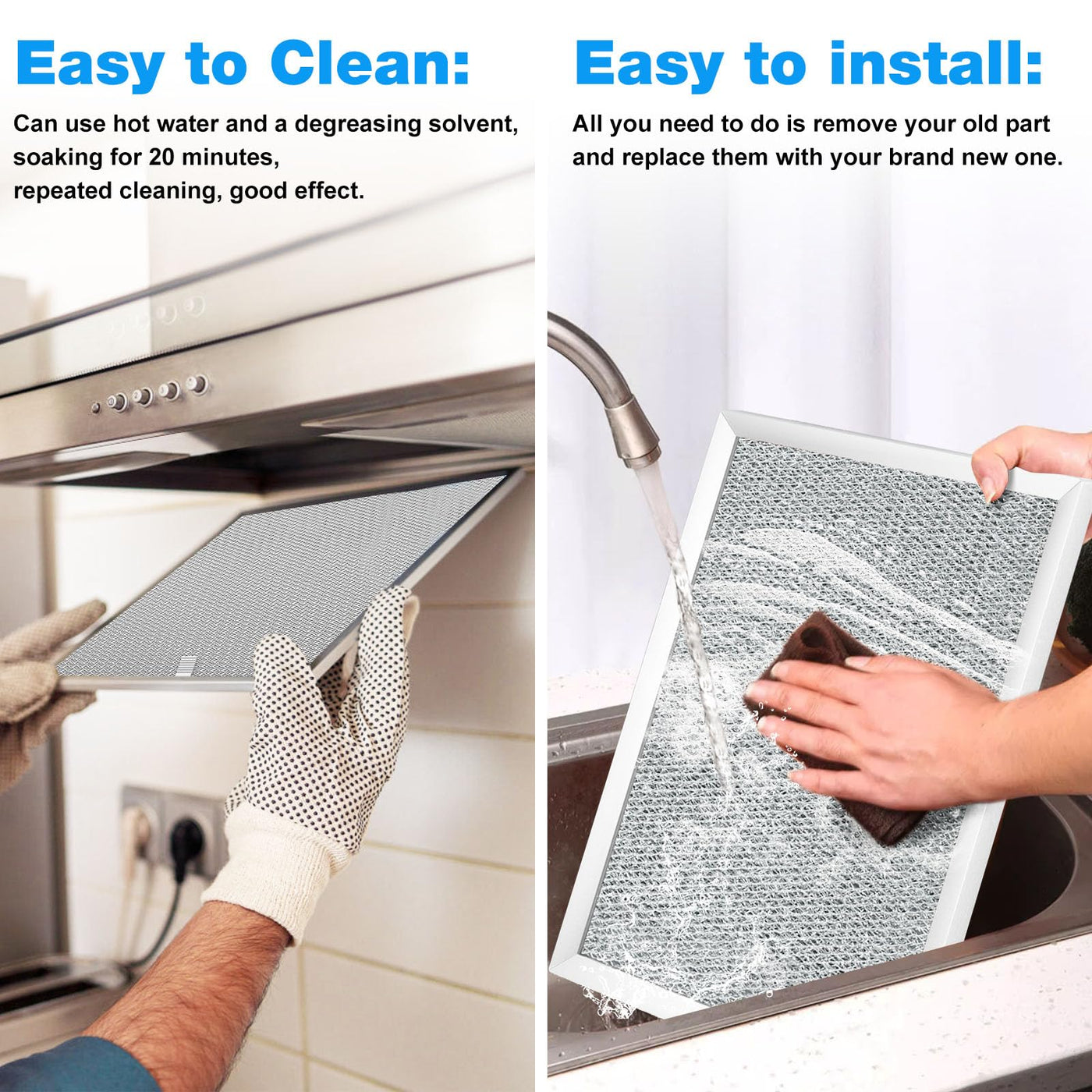 【Easily Installed and Cleaned】 The range hood grease filter has a handle for easy installation. The quick-release door latch makes it easy to remove the 99010299 grease filter and soak it in hot water and degreasing solvent for 10-20 minutes, making it easier to clean.