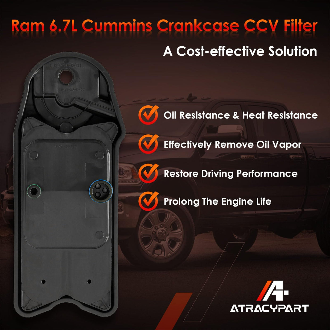 Crankcase Ccv Filter Breather Vent Element Replacement For Ram 2500 3500 4500 5500 6.7L & More, Replaces# Cv52001, 68002433Aa, 68002433Ab