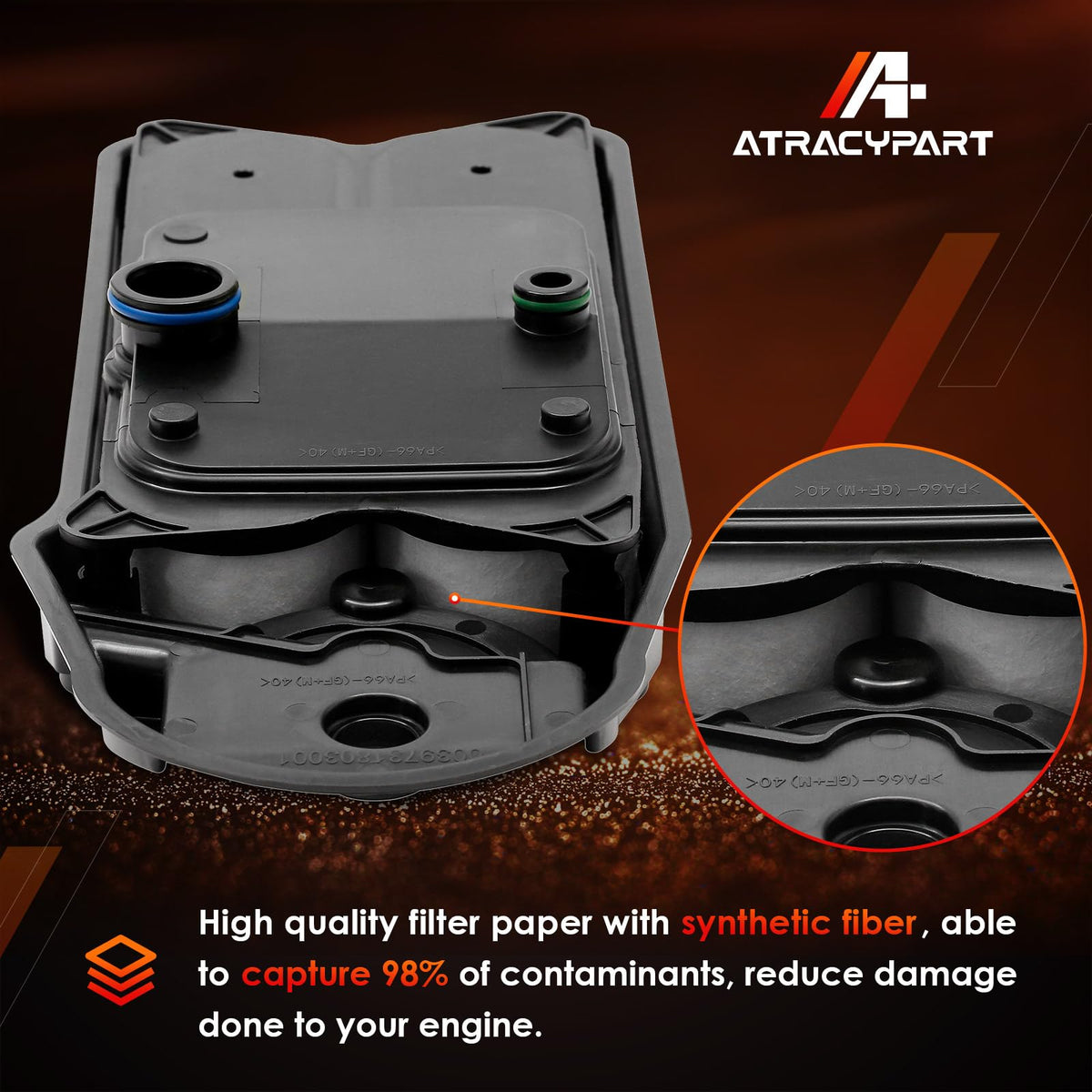 Q: What makes this crankcase filter a premium quality choice?A: This crankcase filter is manufactured to OE specifications, ensuring a factory-fresh appearance and direct-fit. It is made from reinforced materials that offer high resistance to temperature and enhance durability, effectively removing oil vapor and restoring engine performance.