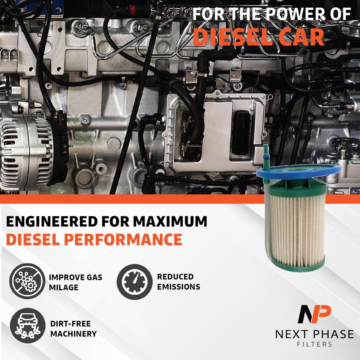 Q: What are the benefits of choosing the Next Phase Diesel Fuel Filter over original equipment parts?A: The Next Phase Diesel Fuel Filter offers a high-quality, affordable alternative to original equipment parts like the O.E. 68223662AA. It provides the same level of filtration performance and reliability at a lower cost, making it a budget-friendly option for vehicle maintenance.