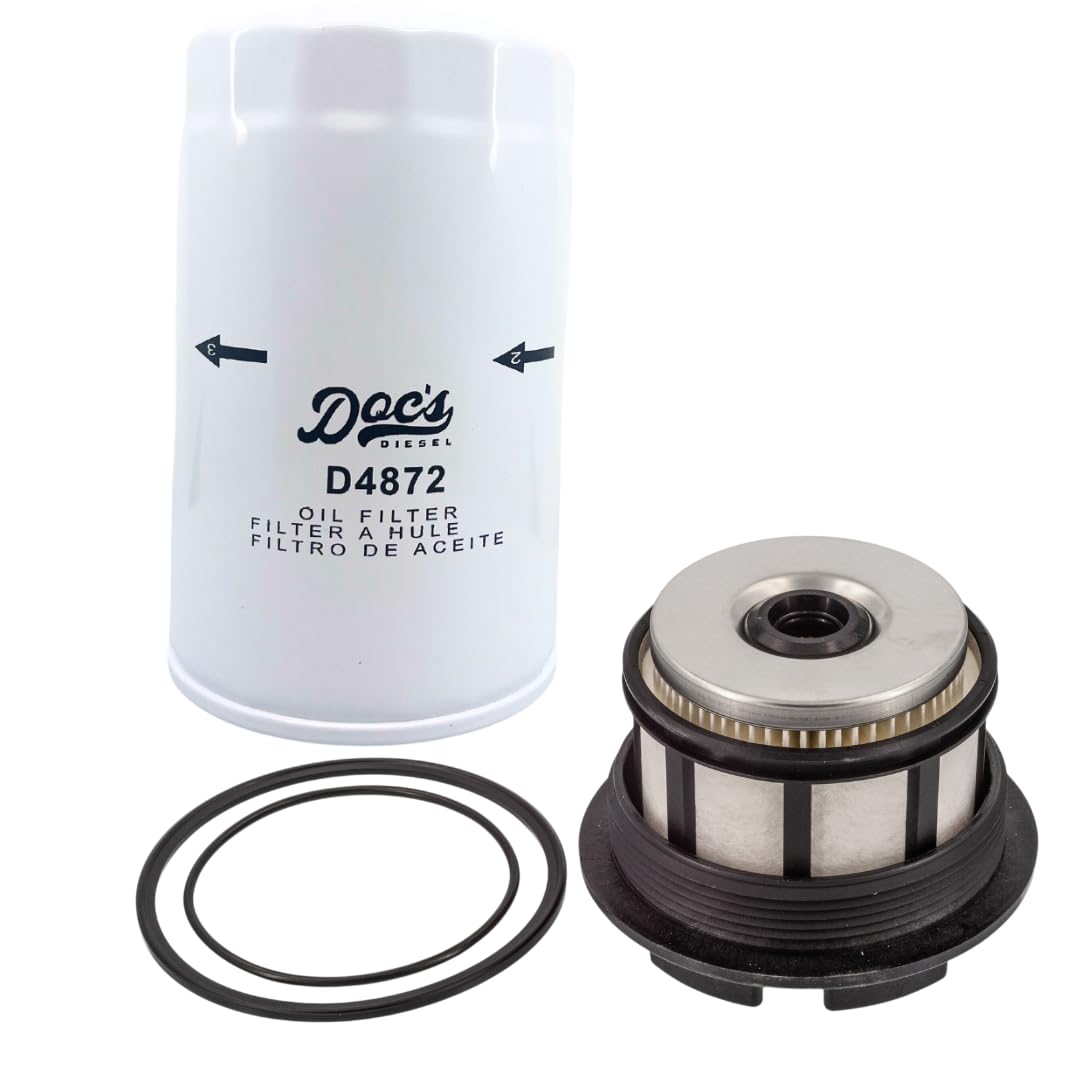 Q: What are the benefits of using a high-efficiency fuel filter and oil filter kit?A: Using a high-efficiency fuel filter and oil filter kit, like the one included in this DOC'S set, helps improve engine performance by ensuring cleaner fuel and oil circulation. This can lead to better fuel economy and reduced engine wear over time.