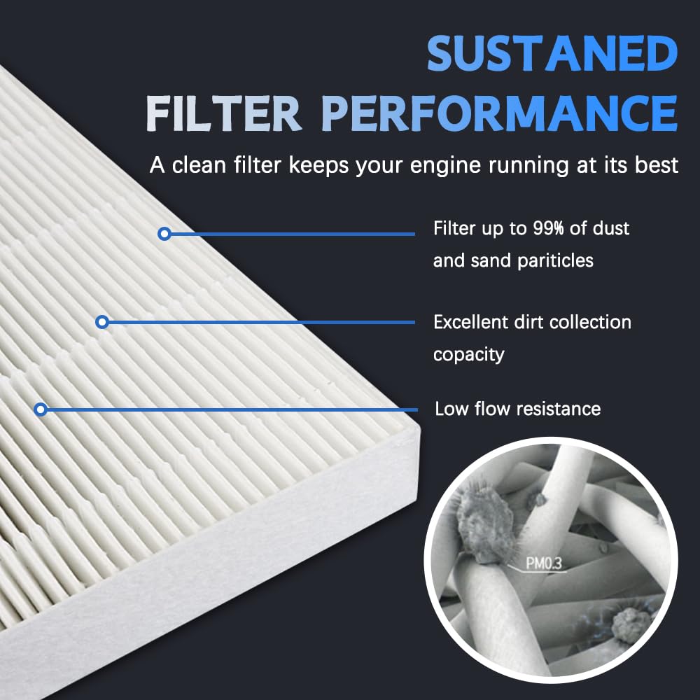 Q: What are the benefits of using the KEDAKEJI Engine Air Filter?A: The KEDAKEJI Engine Air Filter provides several benefits, including capturing dirt, grime, and harmful particles that could damage your engine. Its high-quality construction helps to maintain engine efficiency and performance by preventing dirt from clogging the air filter.