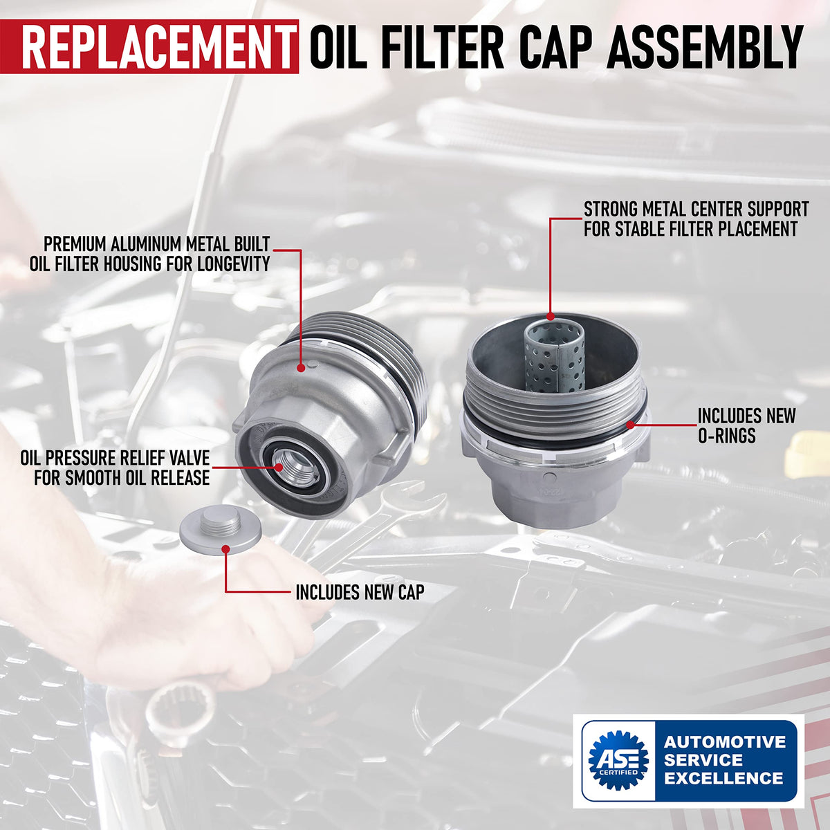 Q: How does this oil filter cap differ from OEM parts?A: While the Engine Oil Filter Cap Assembly is not a genuine OEM part, it is designed as a direct replacement that fits and functions like the factory part. Its high-quality aluminum construction offers improved durability and performance over the standard plastic caps.