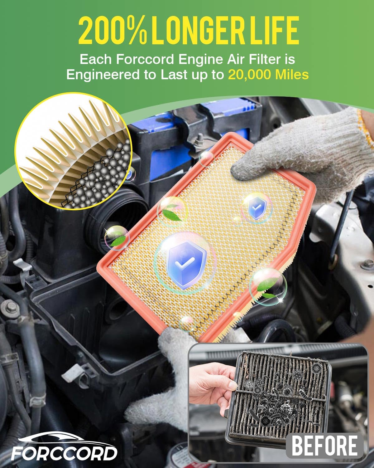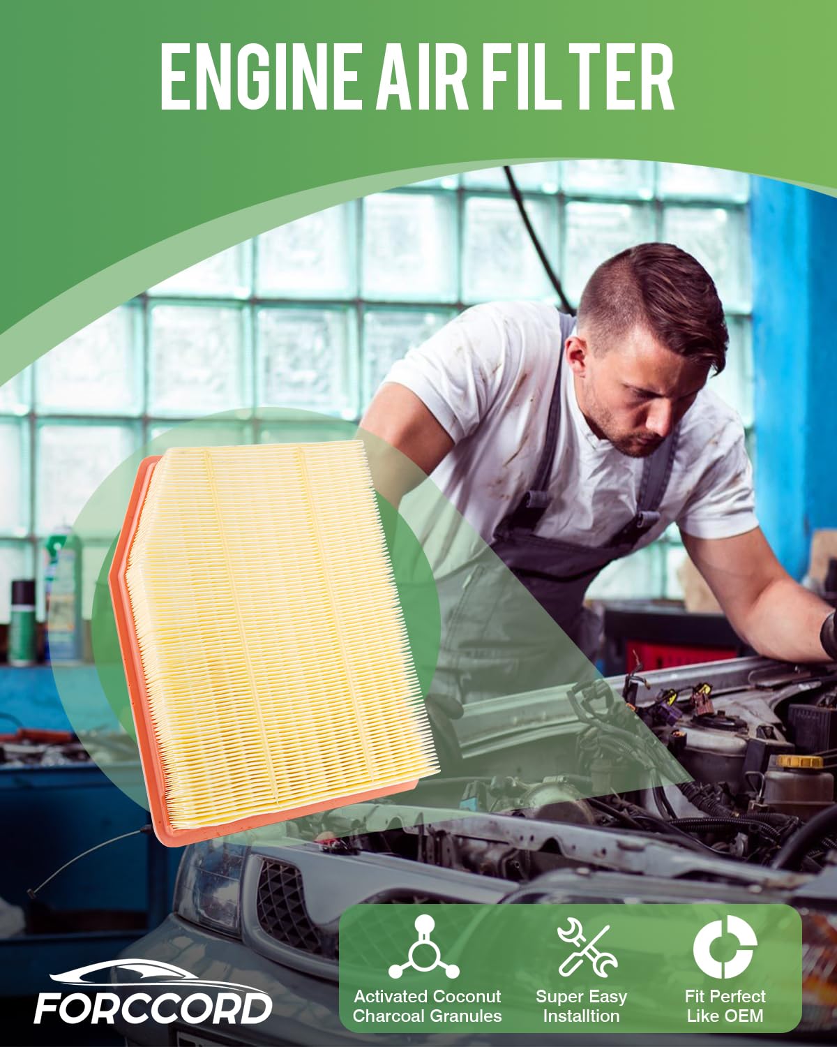 Forccord Cabin & Engine Air Filter Kit Fit For Silverado 1500/Sierra 1500 2019-25, Tahoe/Suburban/Yukon 2021-25, Cadillac Escala