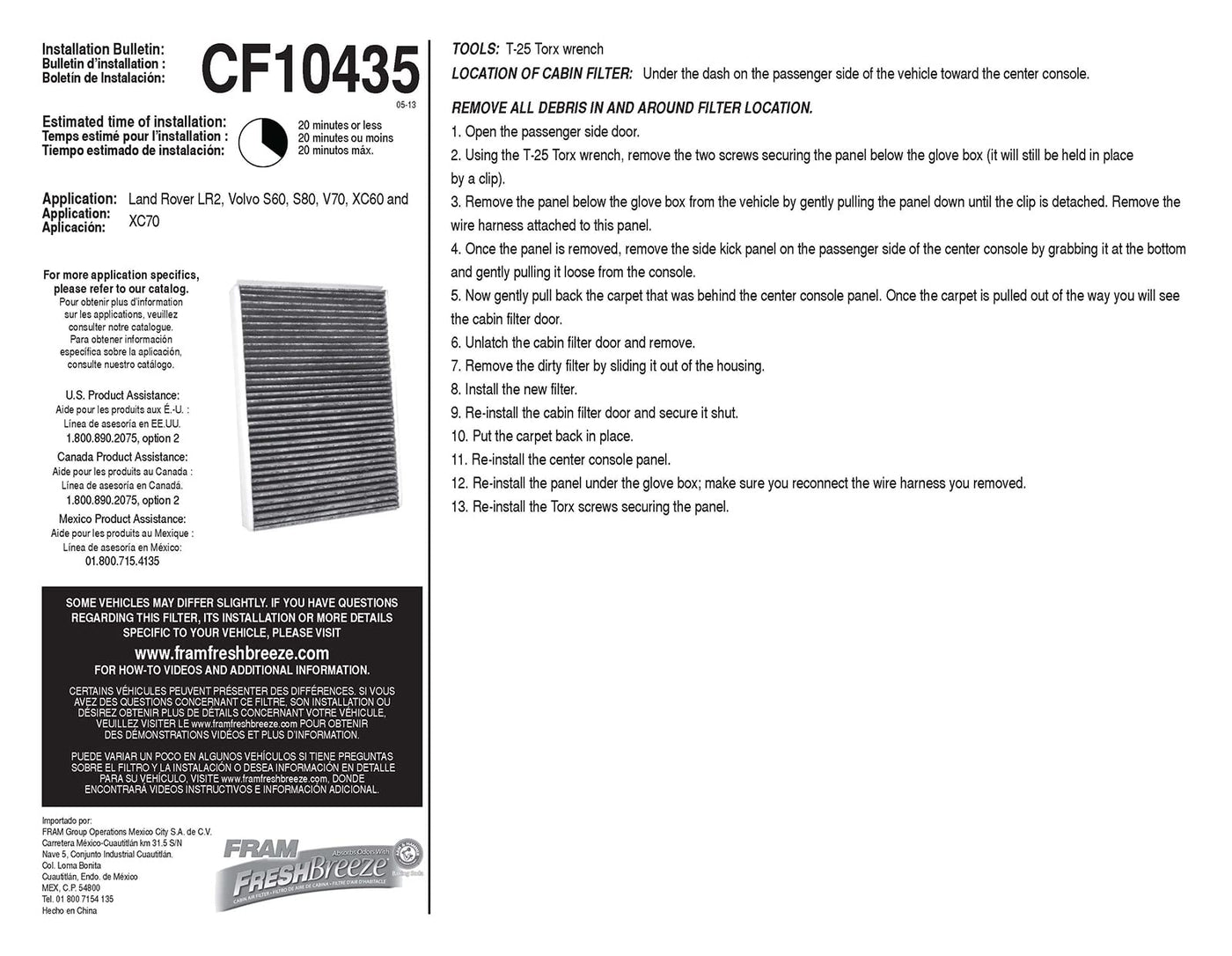 Fram Fresh Breeze Cabin Air Filter Replacement For Car Passenger Compartment W/ Arm And Hammer Baking Soda,Easy Install,Cf10435