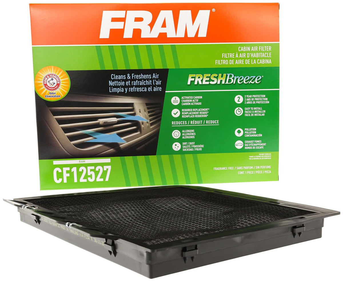 Fram Fresh Breeze Cabin Air Filter Replacement With Arm & Hammer Baking Soda And Activated Carbon, Cf12527, 2 Year Protection, E