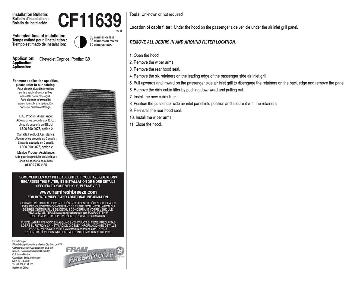 Fram Fresh Breeze Cabin Air Filter With Arm & Hammer Baking Soda, Cf11639 For Select Chevrolet And Pontiac Vehicles , White